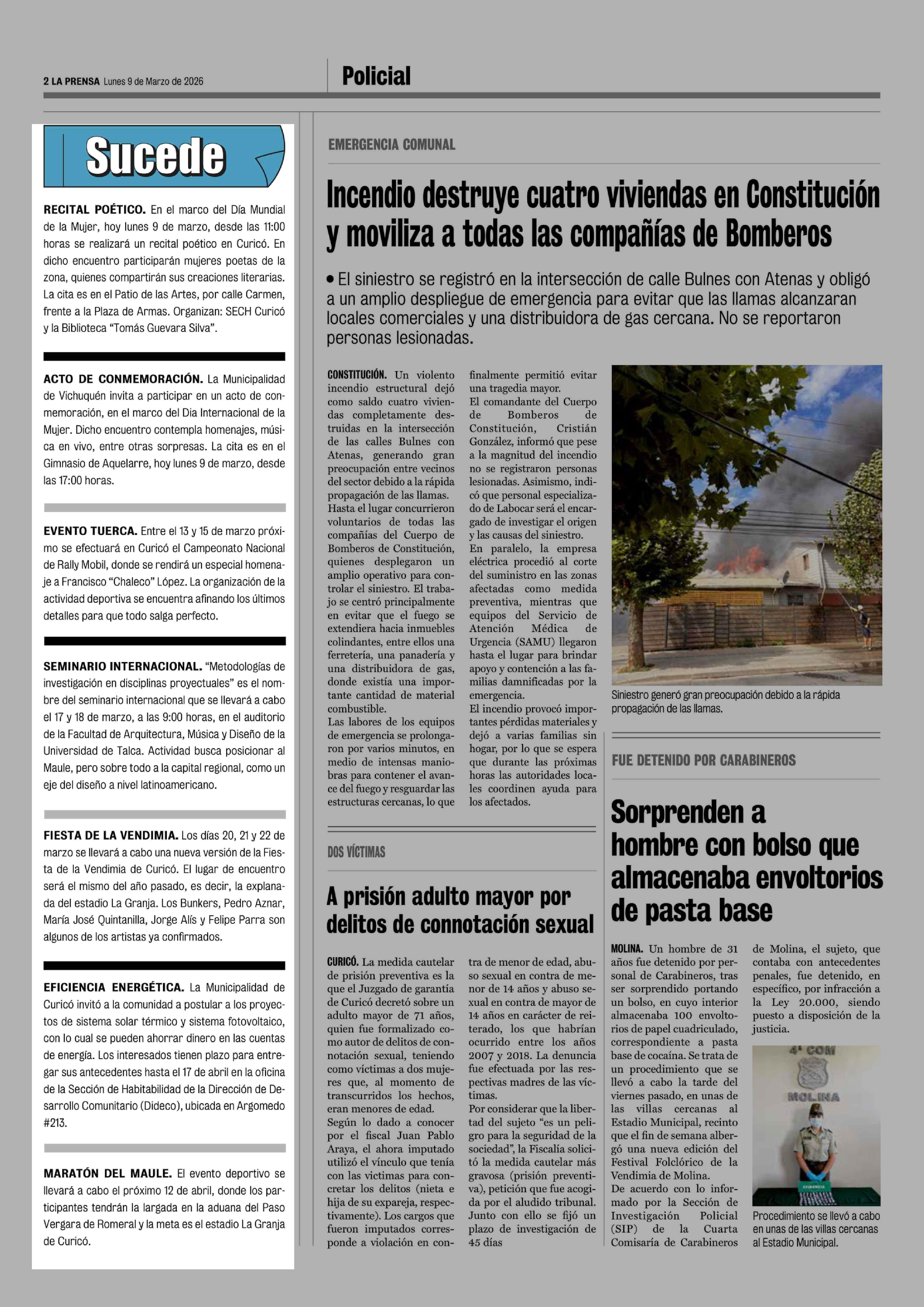 Sucede 09-03-2026 La Prensa de Curicó |