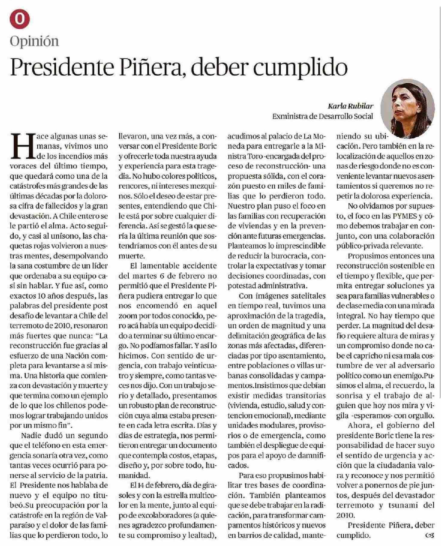 Presidente Piñera, deber cumplido 18-02-2024 El Mercurio de Valparaíso |