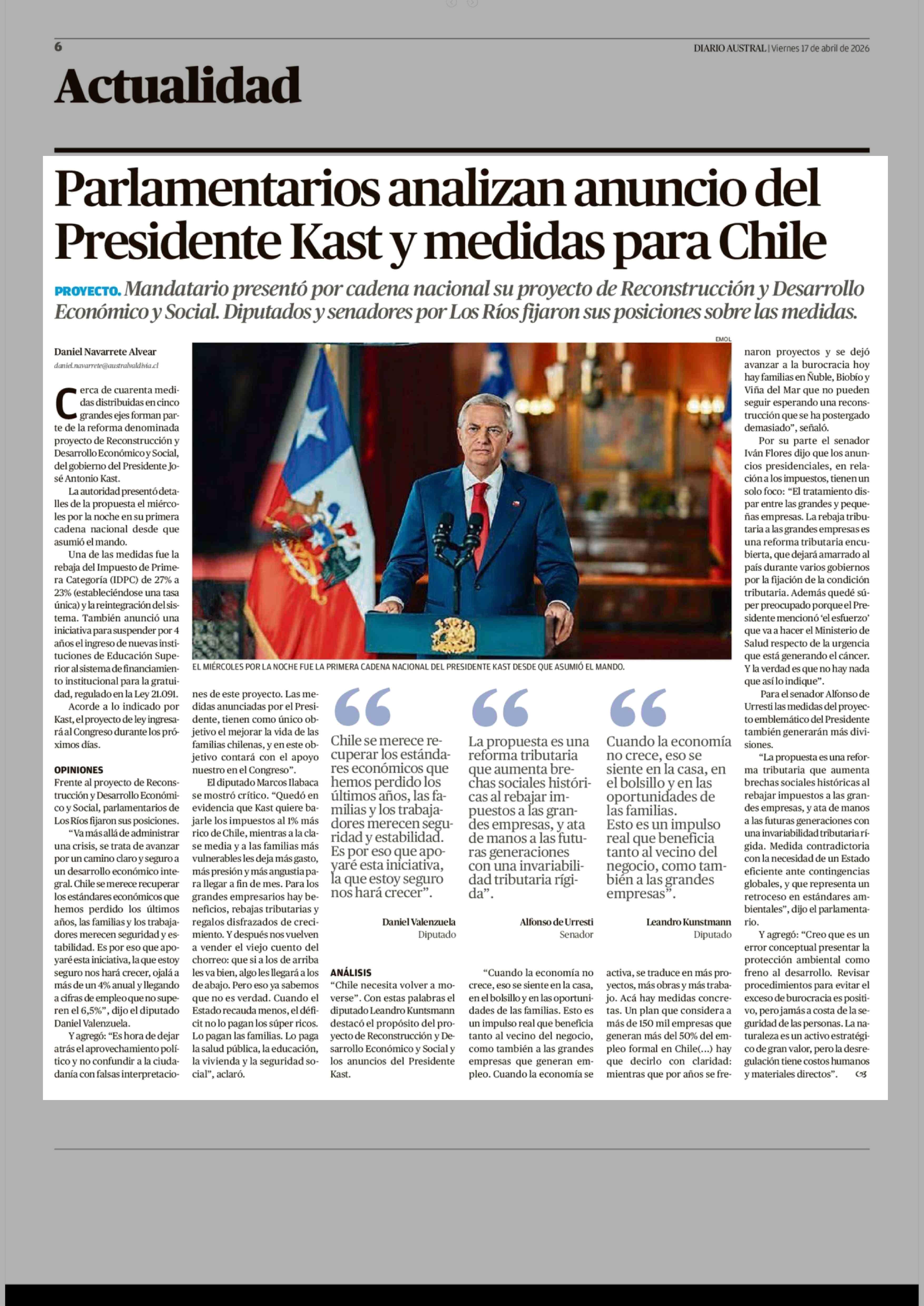 Título: Parlamentarios analizan anuncio del Presidente Kast y medidas para Chile