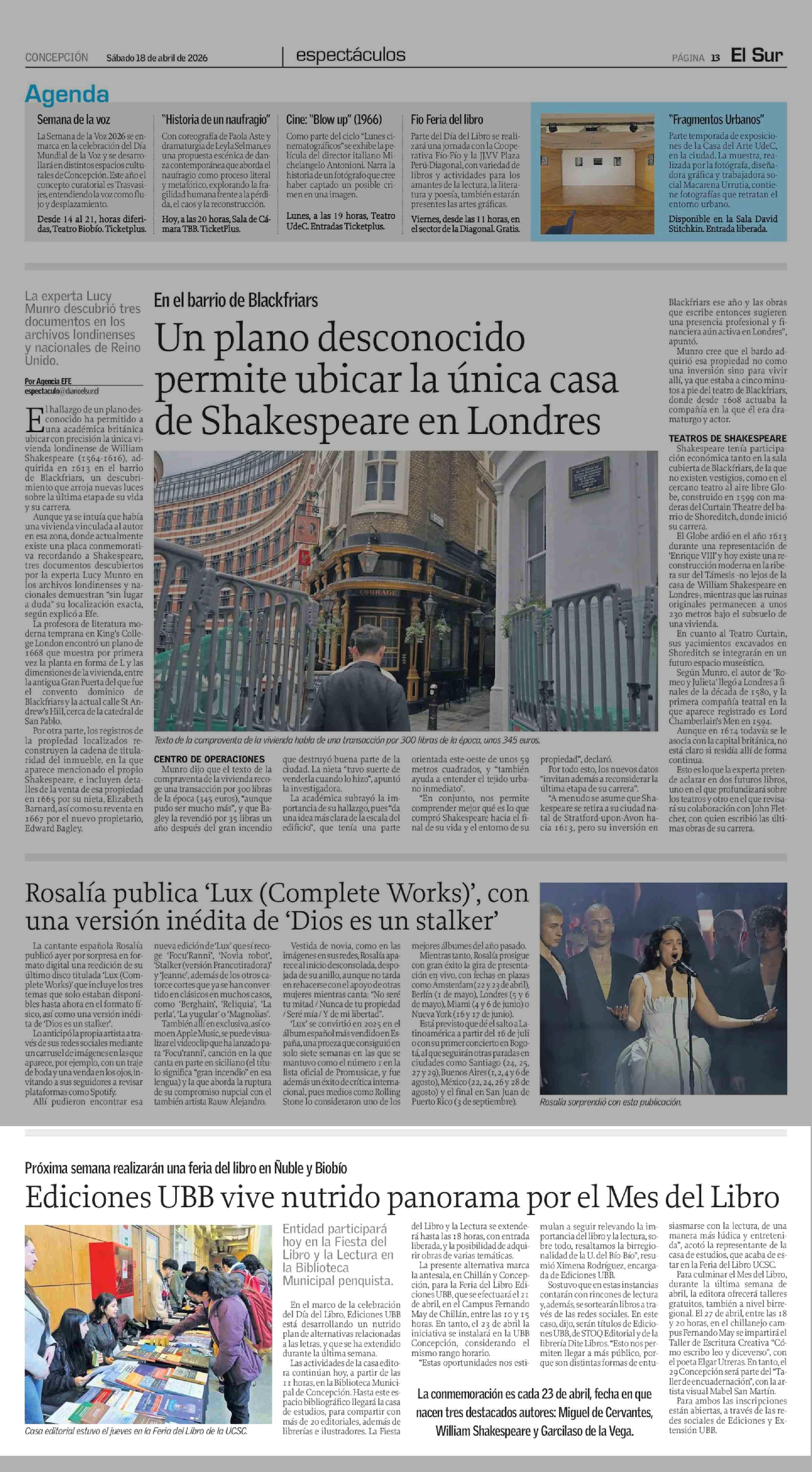 Ediciones UBB vive nutrido panorama por el Mes del Libro 18-04-2026 El Sur |