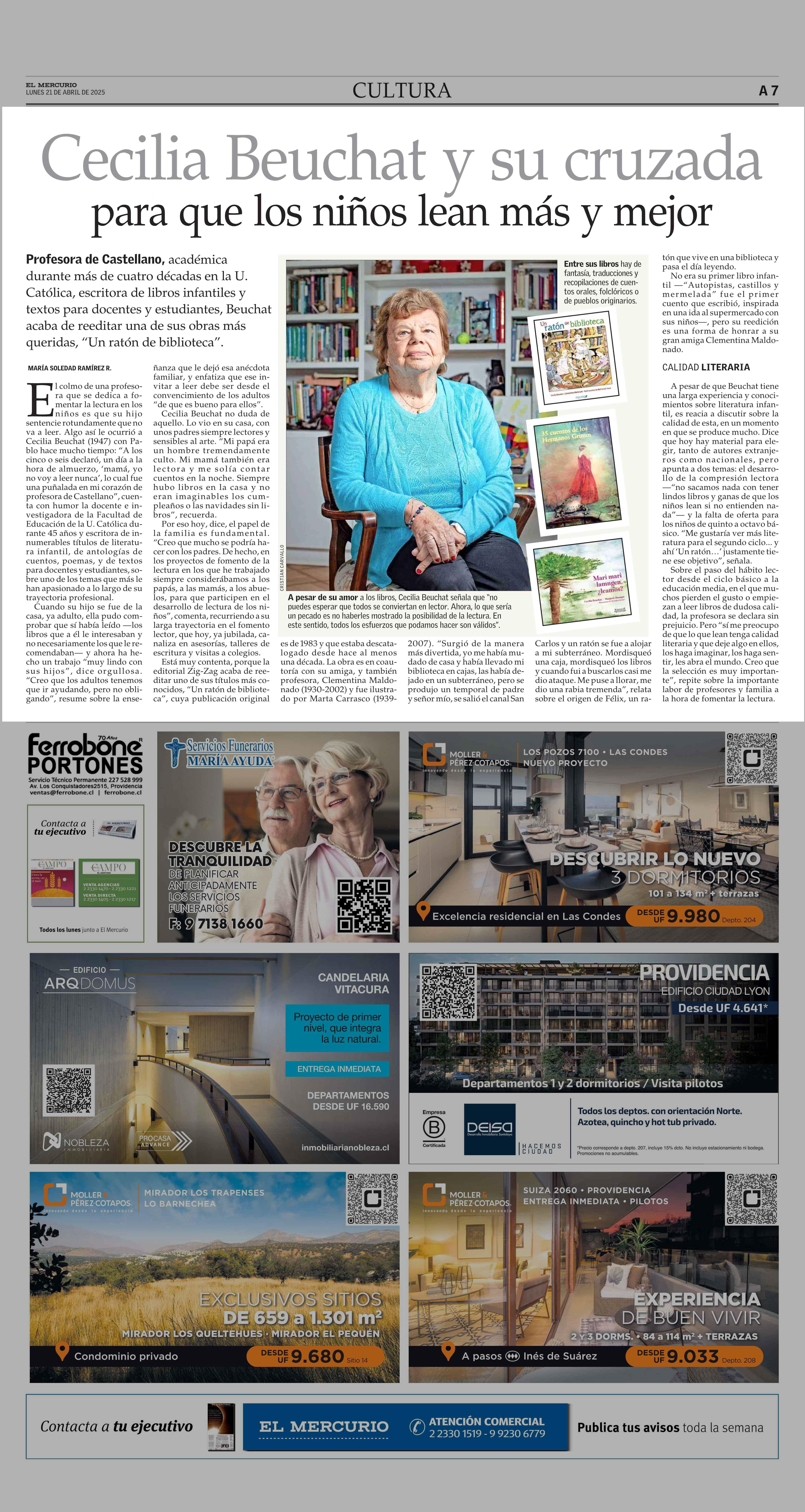 Cecilia Beuchat y su cruzada para que los niños lean más y mejor 21-04-2025 El Mercurio |