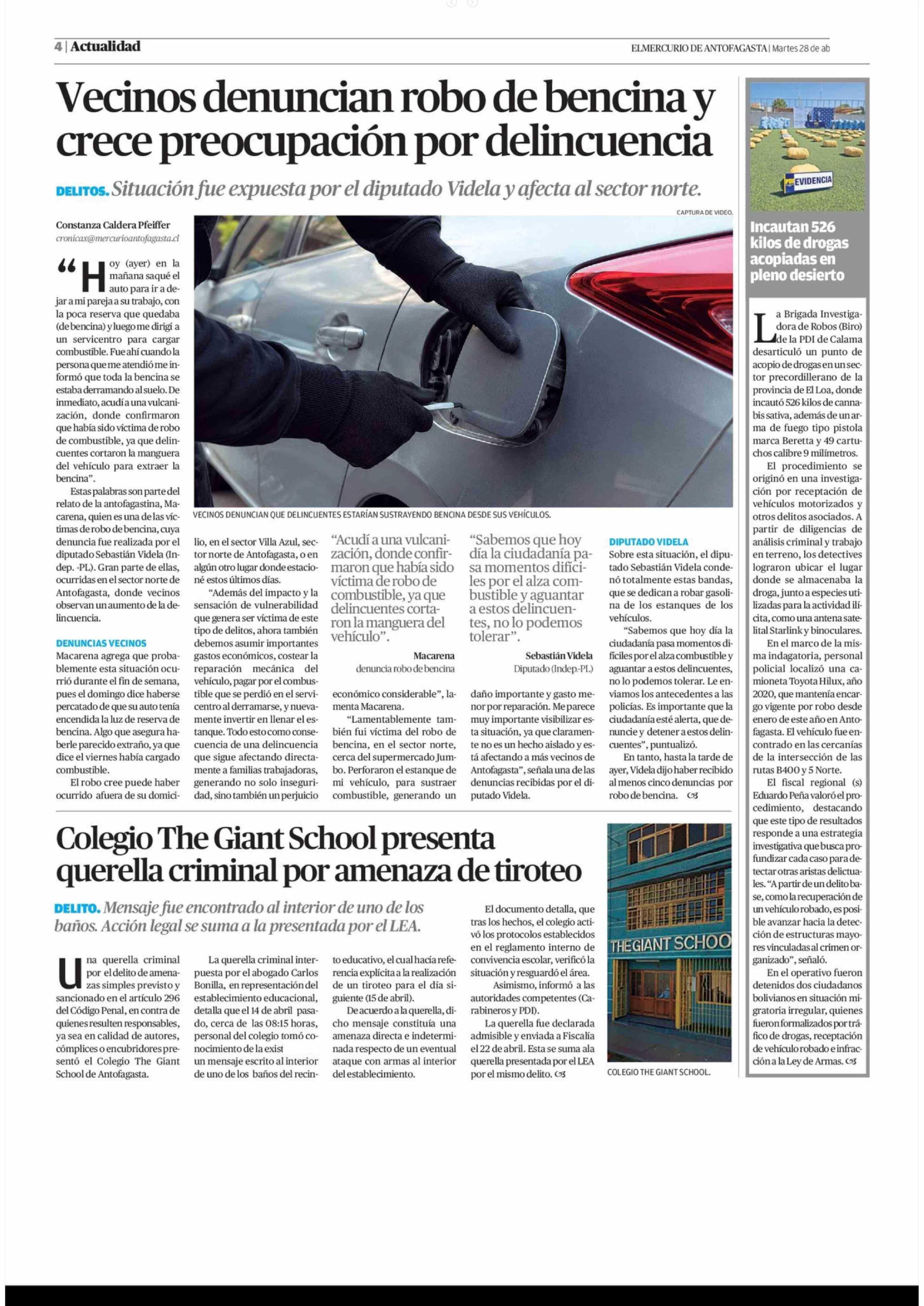 Colegio The Giant School presenta querella criminal por amenaza de tiroteo 28-04-2026 El Mercurio de Antofagasta |