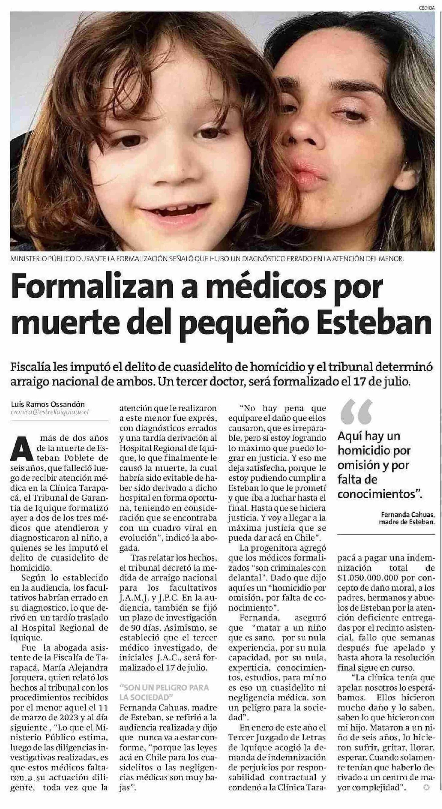 Título: Formalizan a médicos por muerte del pequeño Esteban