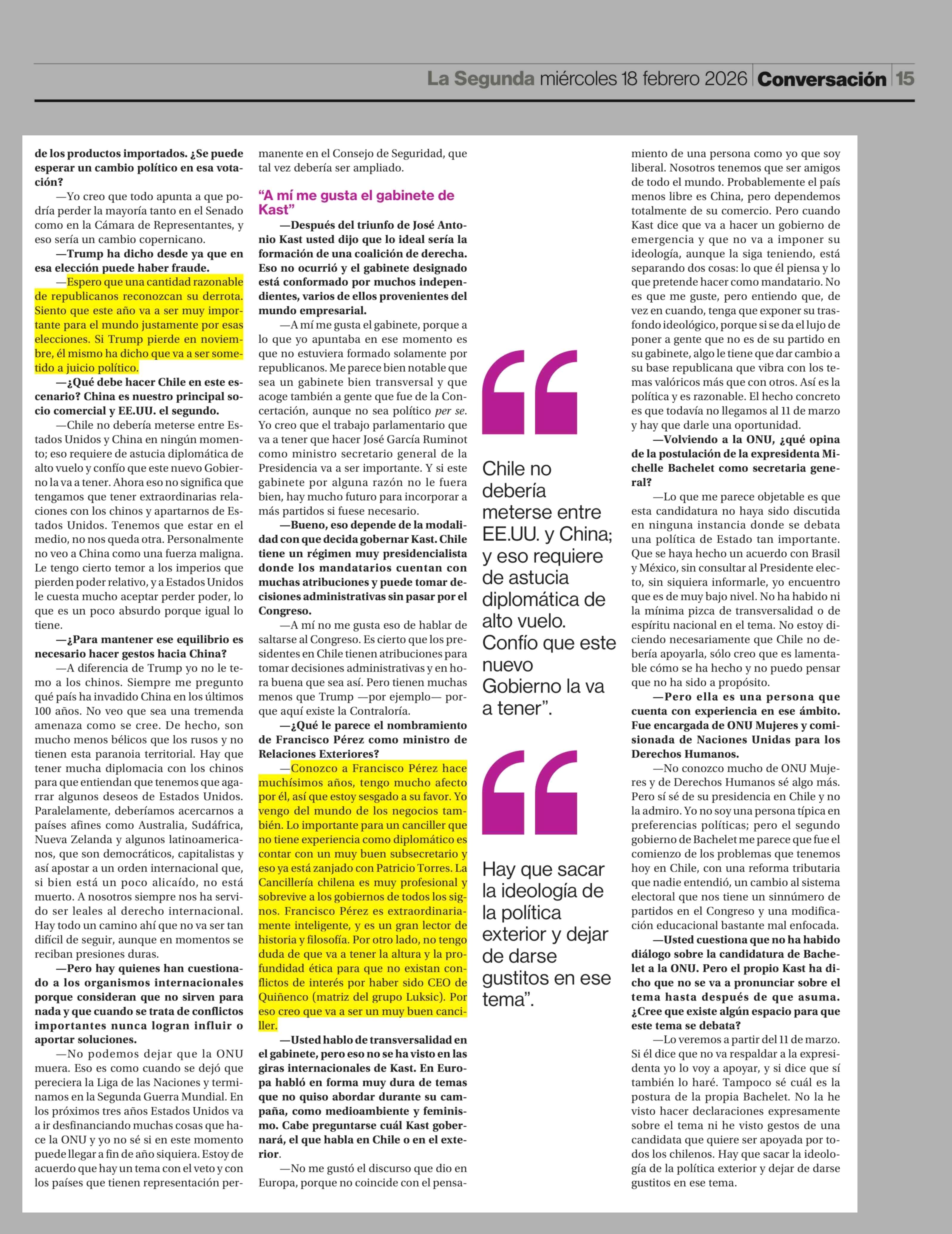 "Es objetable que la candidatura de Bachelet no haya sido discutida en ninguna instancia" 18-02-2026 La Segunda |