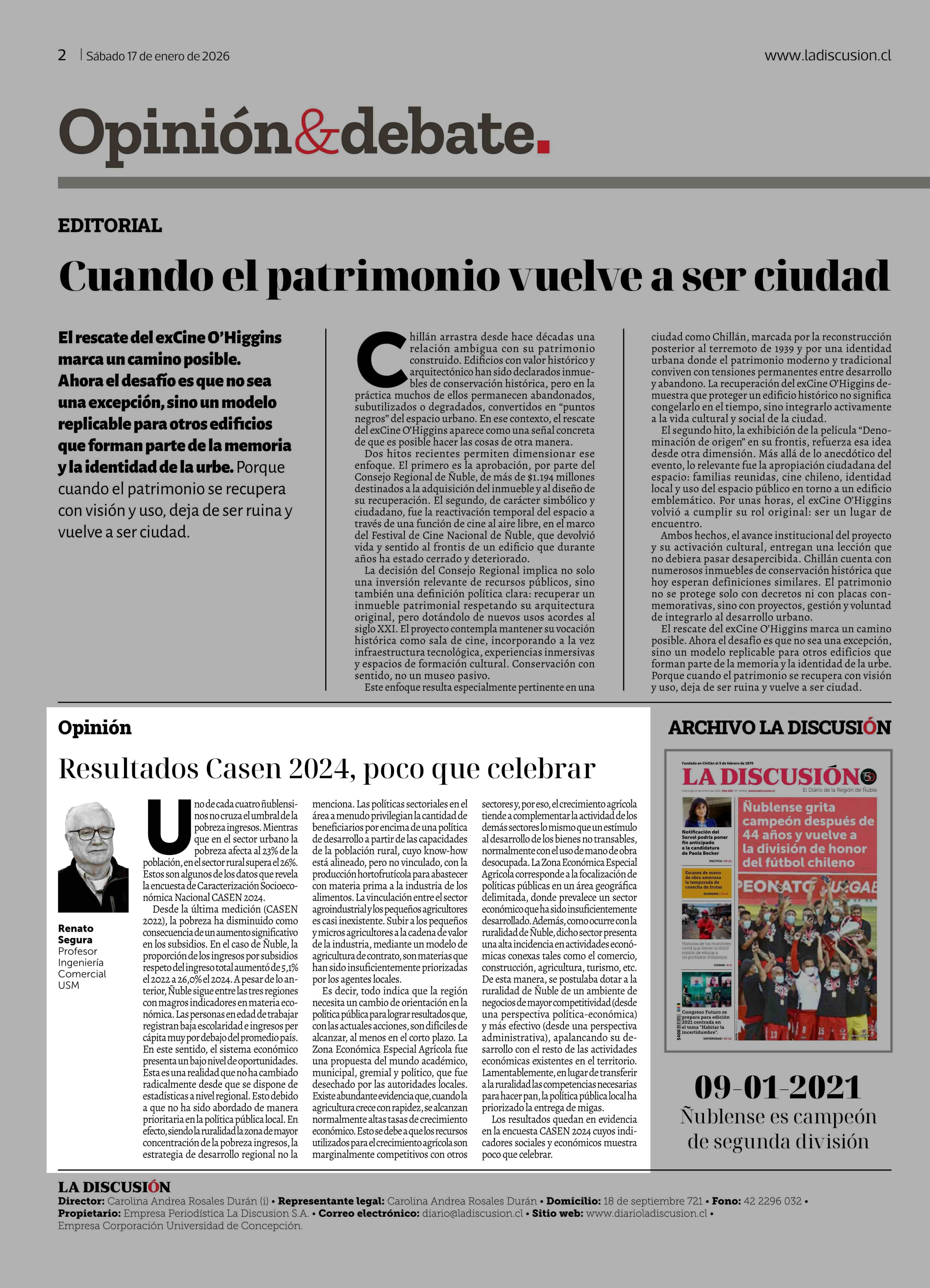 Fecha: 17-01-2026 Sector: Columnas de Opinión Región: Región del Ñuble