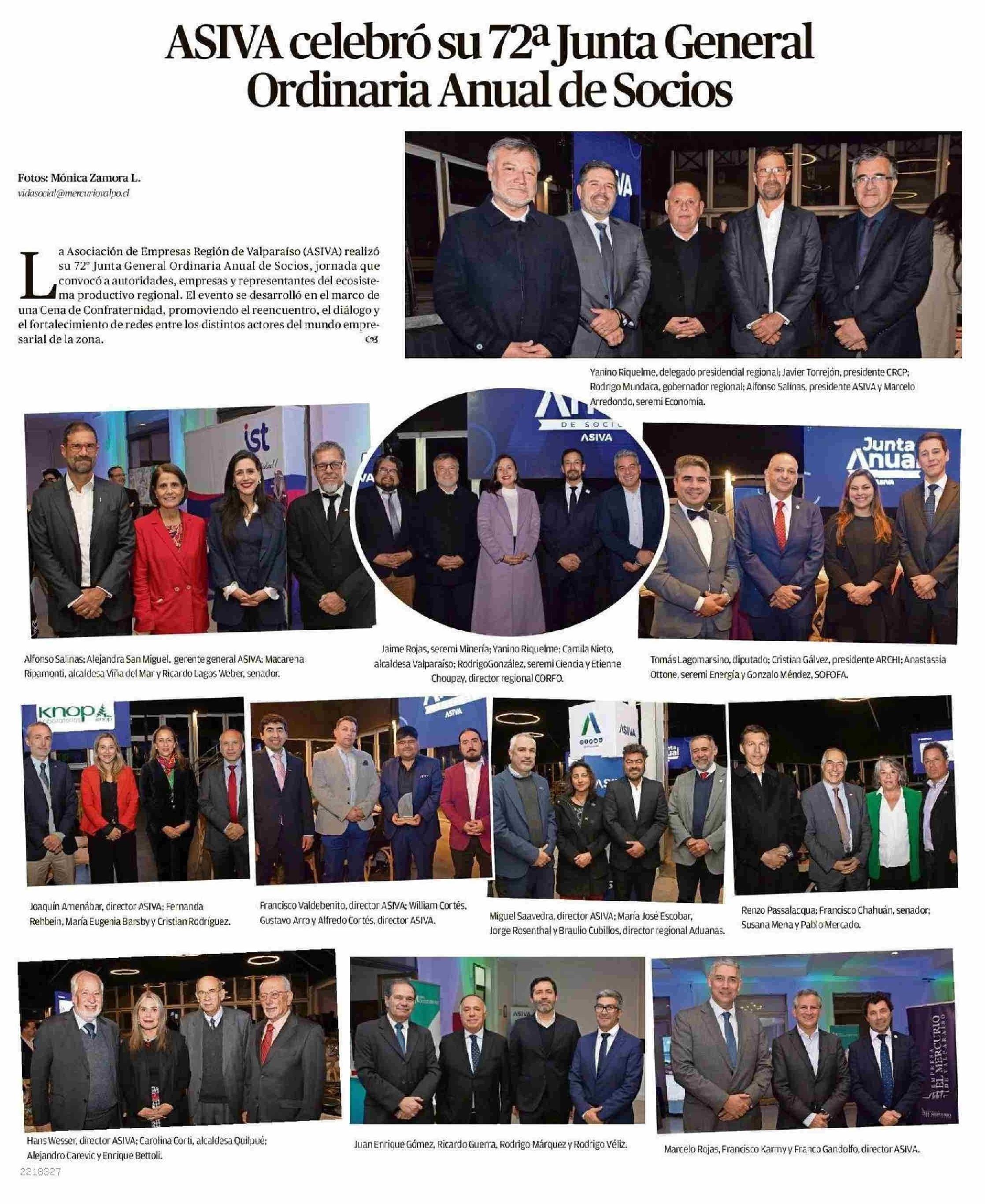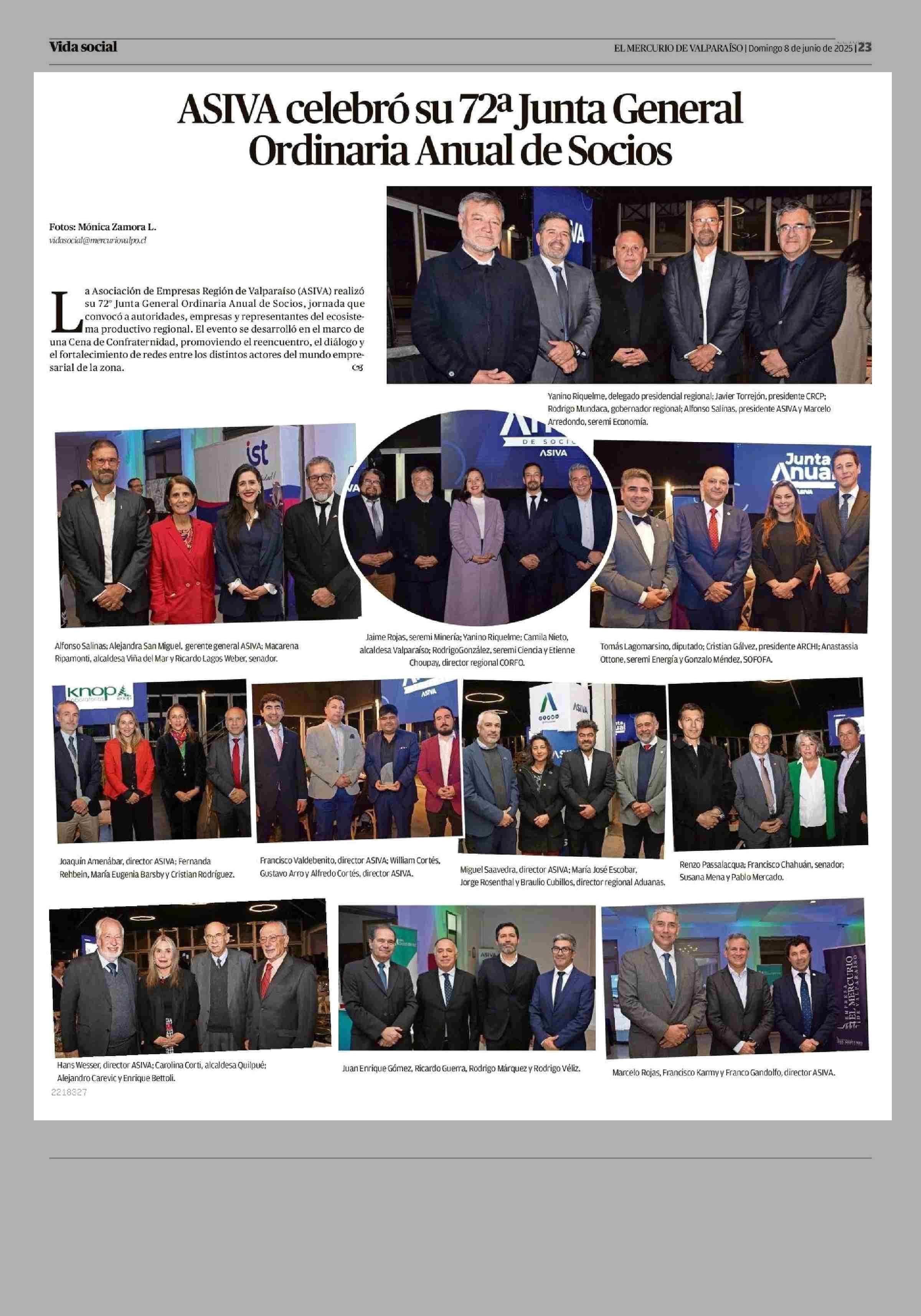 ASIVA celebró su 72ª Junta General Ordinaria Anual de Socios 08-06-2025 El Mercurio de Valparaíso |