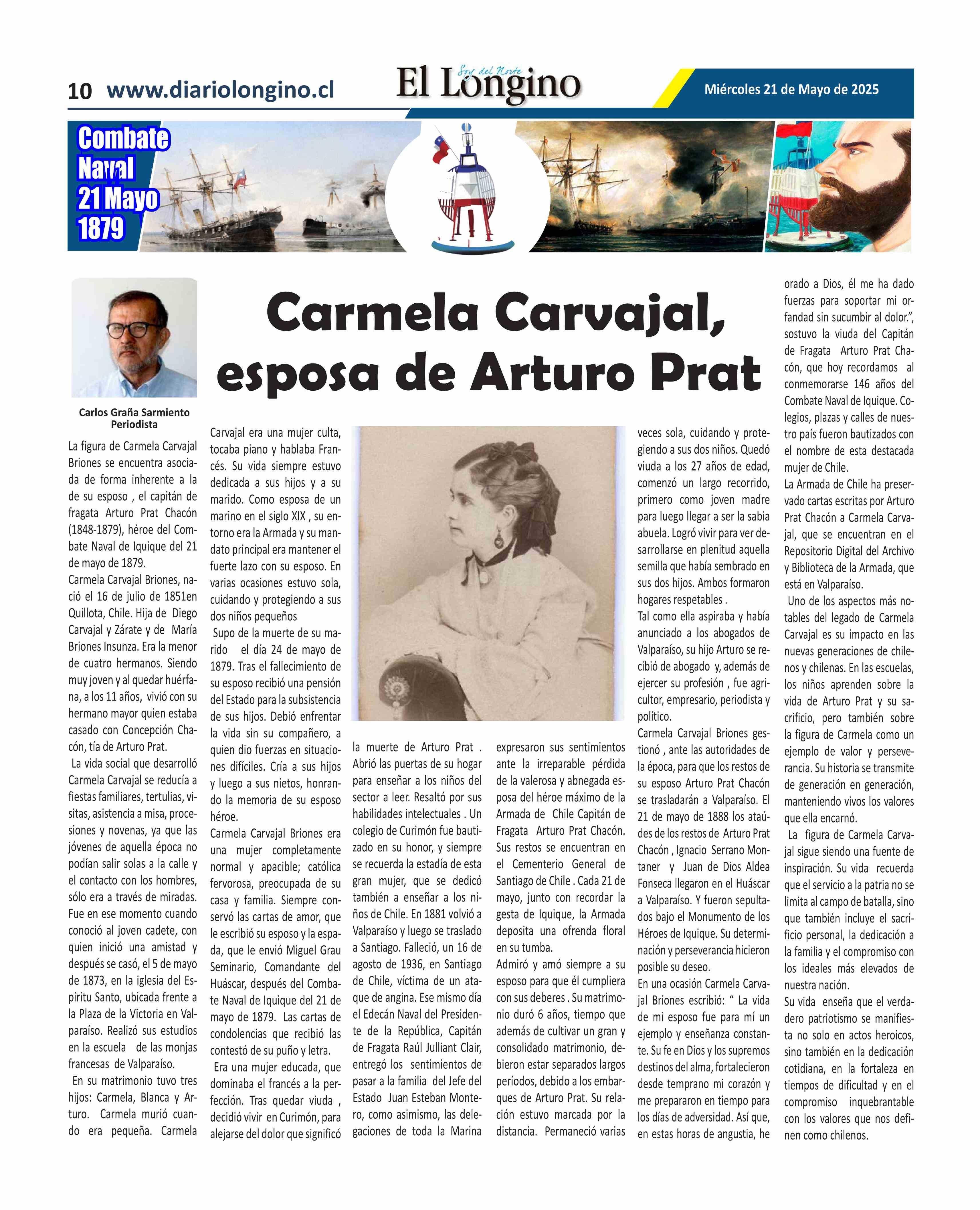 Carmela Carvajal, esposa de Arturo Prat 21-05-2025 El Longino |
