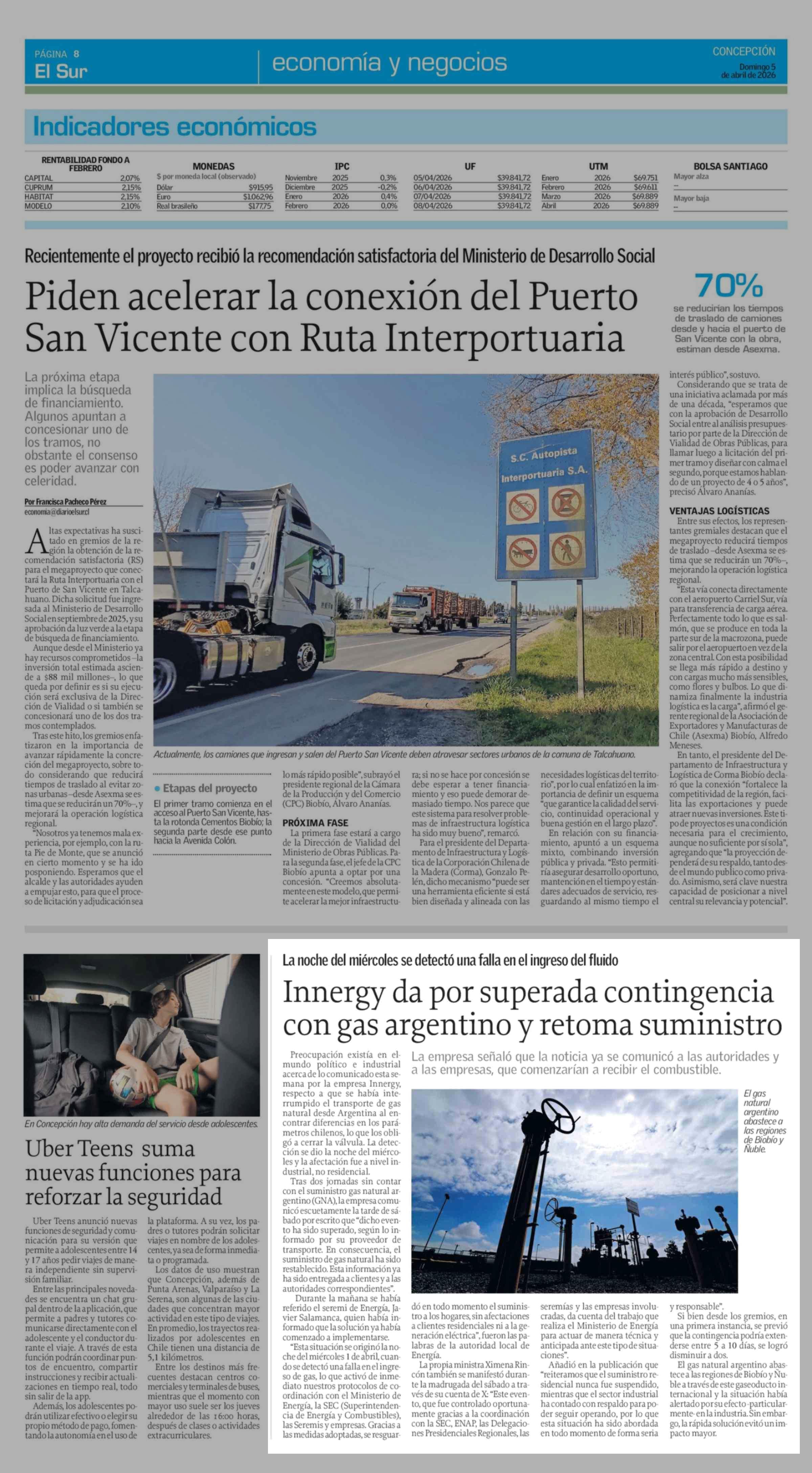 Innergy da por superada contingencia con gas argentino y retoma suministro 05-04-2026 El Sur |