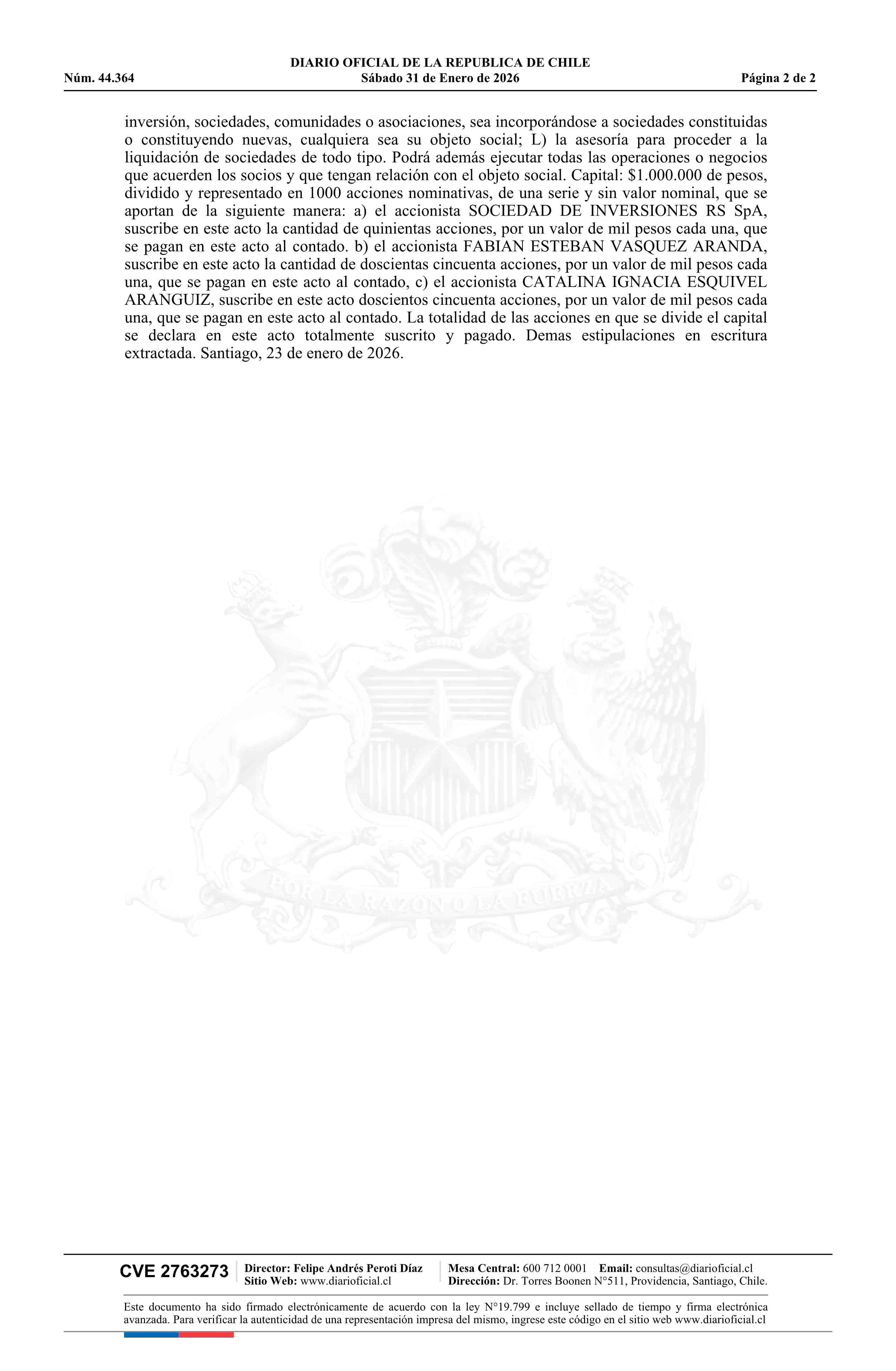 INVERSIONES Y COMERCIALIZADORA KIZUMI GLOBAL SpA 31-01-2026 Diario Oficial Edición Electrónica |