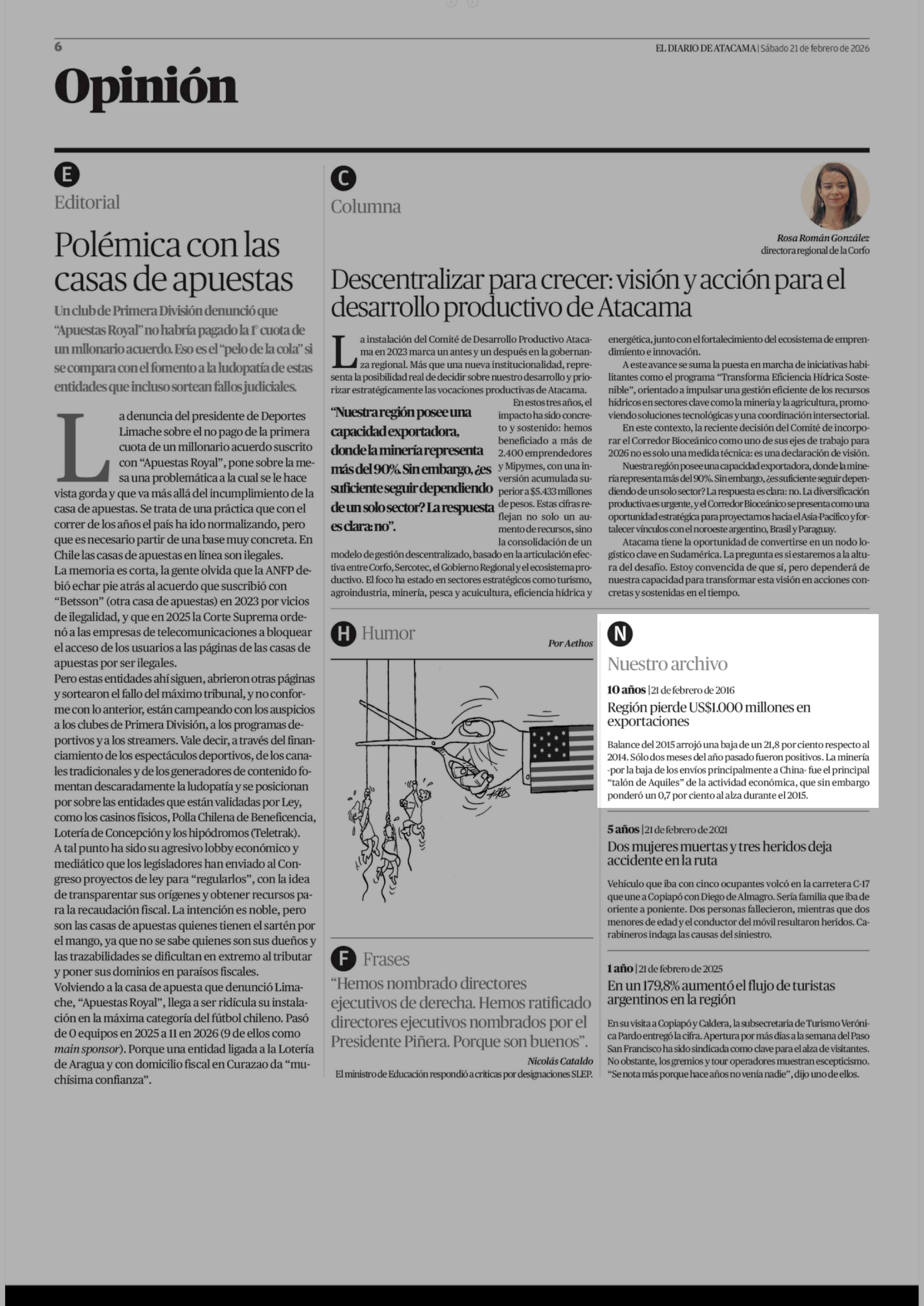 | Fecha: | 21-02-2026 | Sector: | Noticia general | Región: | Región de Atacama |