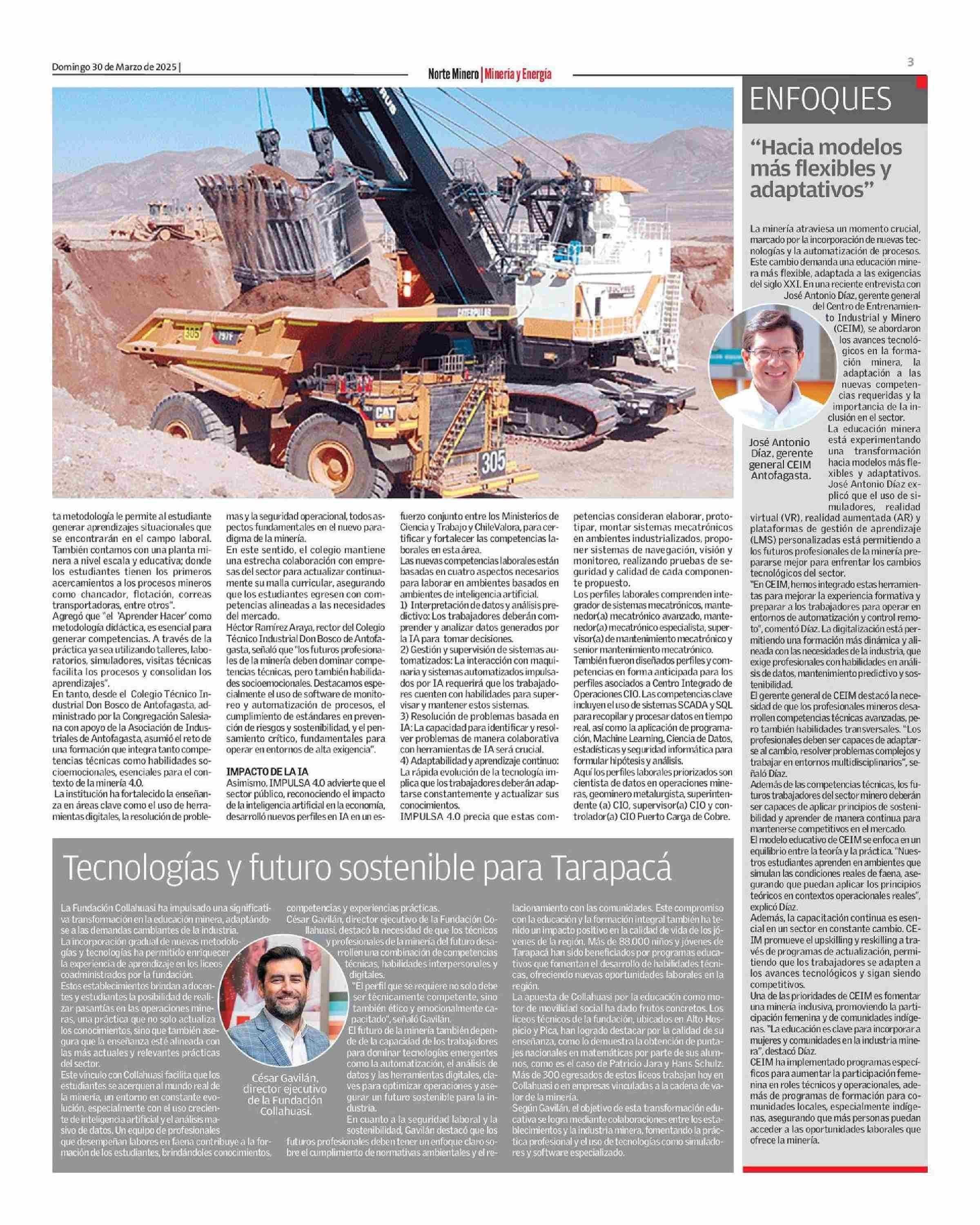 Educación para la minería: nuevos empleos y las transformaciones por inteligencia artificial 30-03-2025 El Mercurio de Antofagasta |
