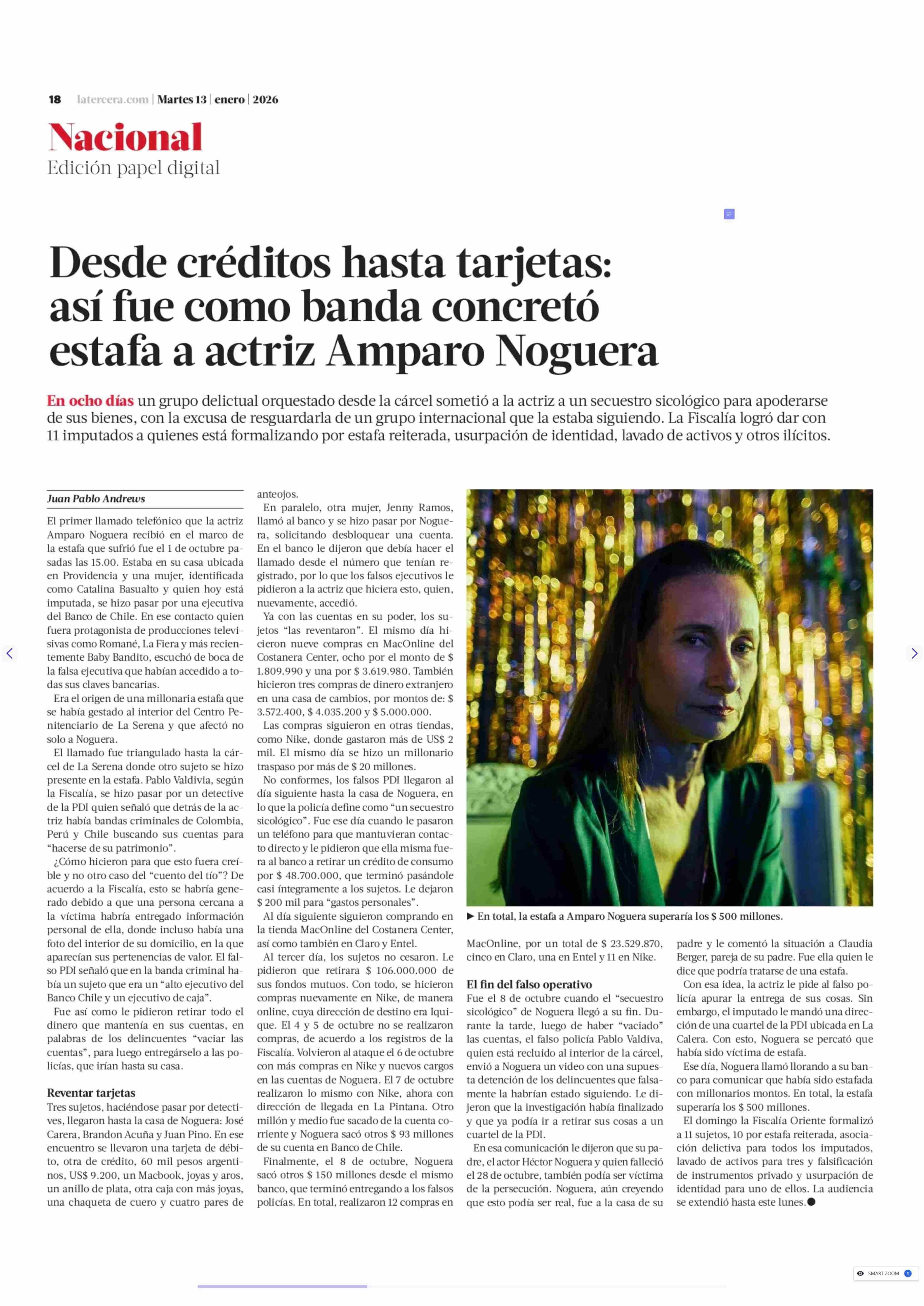Fuente: La Tercera (La Tercera) Página(s): 18