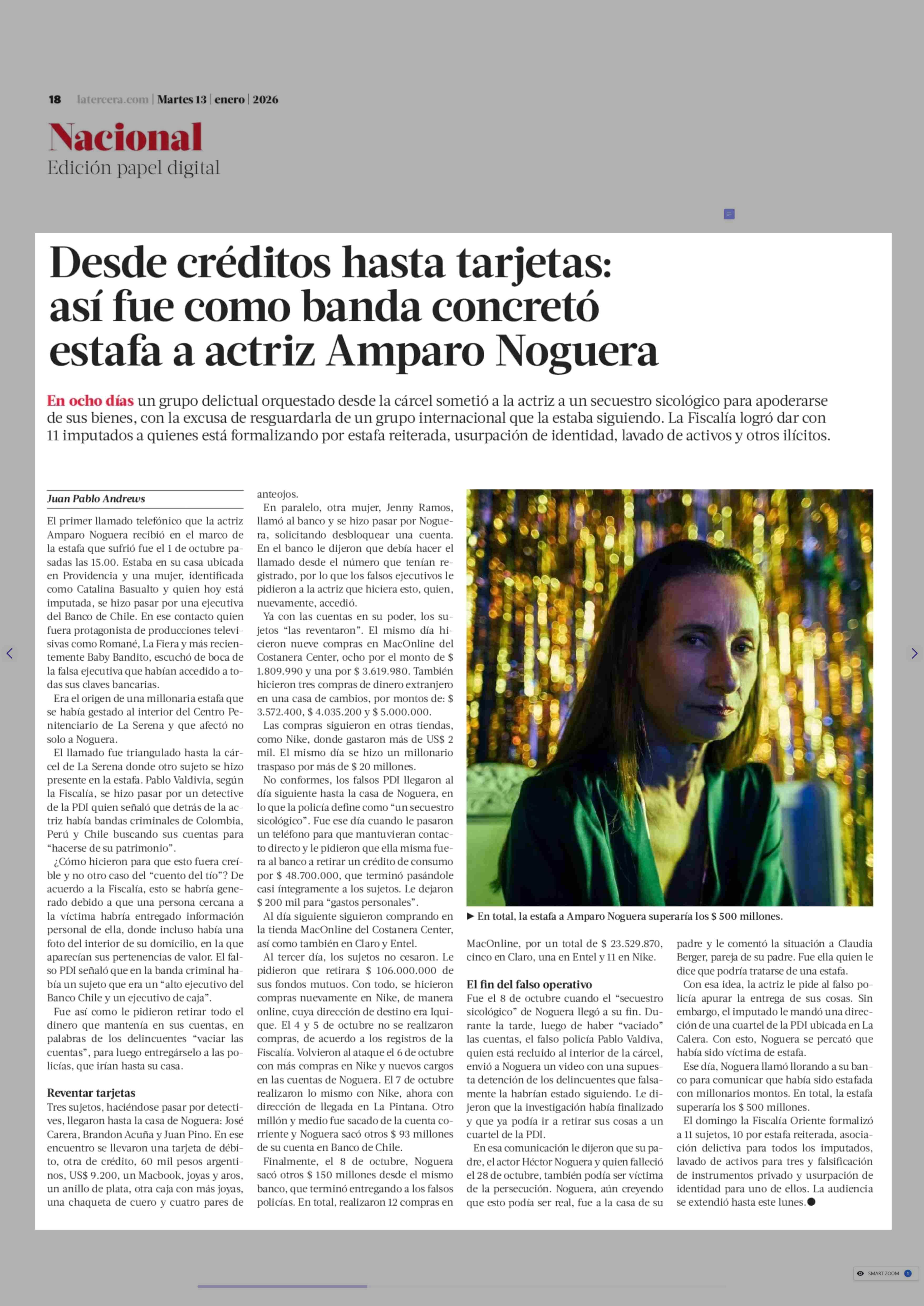 Título: Desde créditos hasta tarjetas: así fue como banda concretó estafa a actriz Amparo Noguera