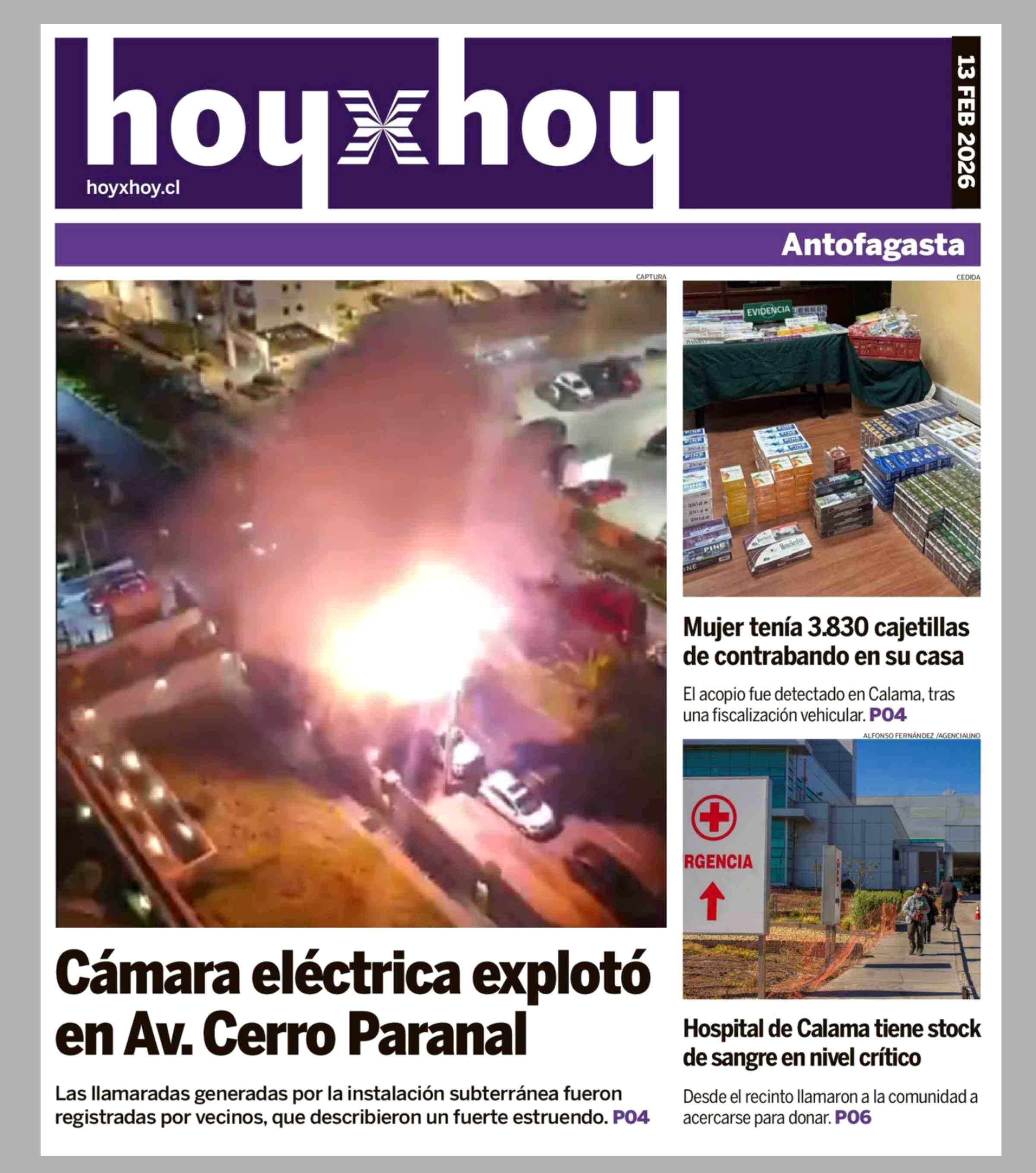 PORTADA HOYXHOY ANTOFAGASTA - CHILE 13-02-2026 Hoy x Hoy Antofagasta |