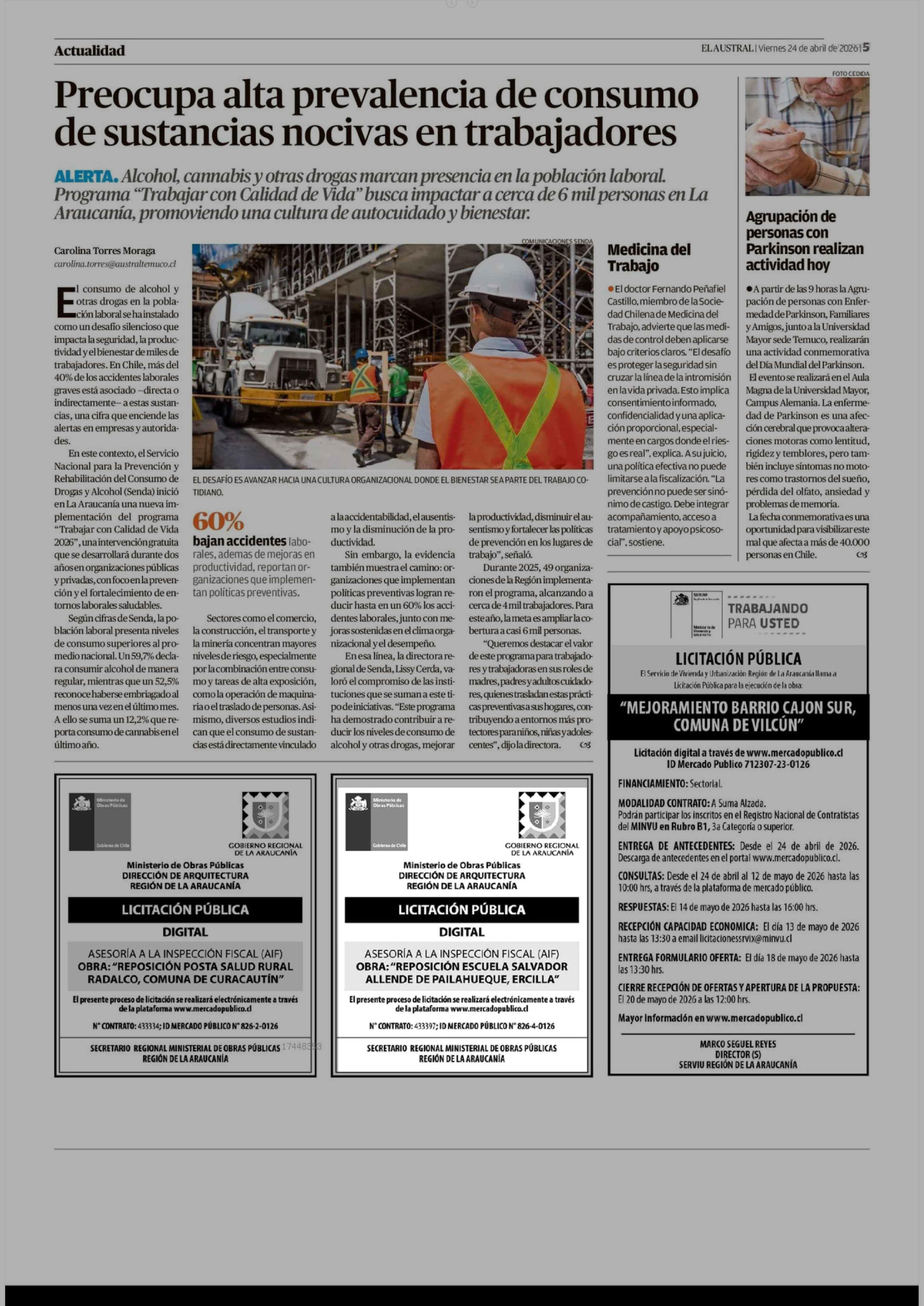 Aviso Licitaciones: Ministerio de Obras Públicas 24-04-2026 El Austral de la Araucanía |