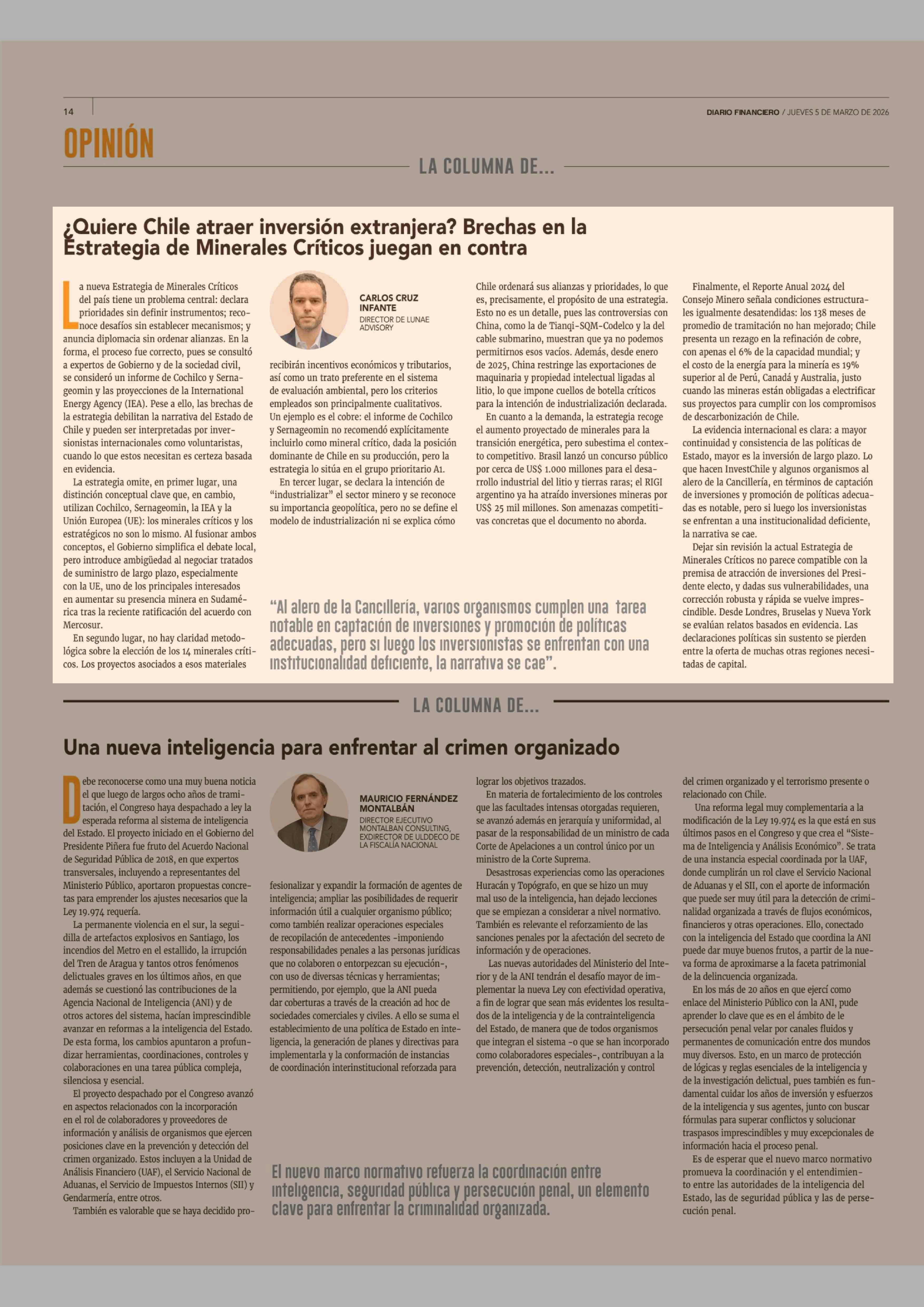 Título: Columnas de Opinión: ¿Quiere Chile atraer inversión extranjera? Brechas en la Estrategia de Minerales Críticos juegan en contra