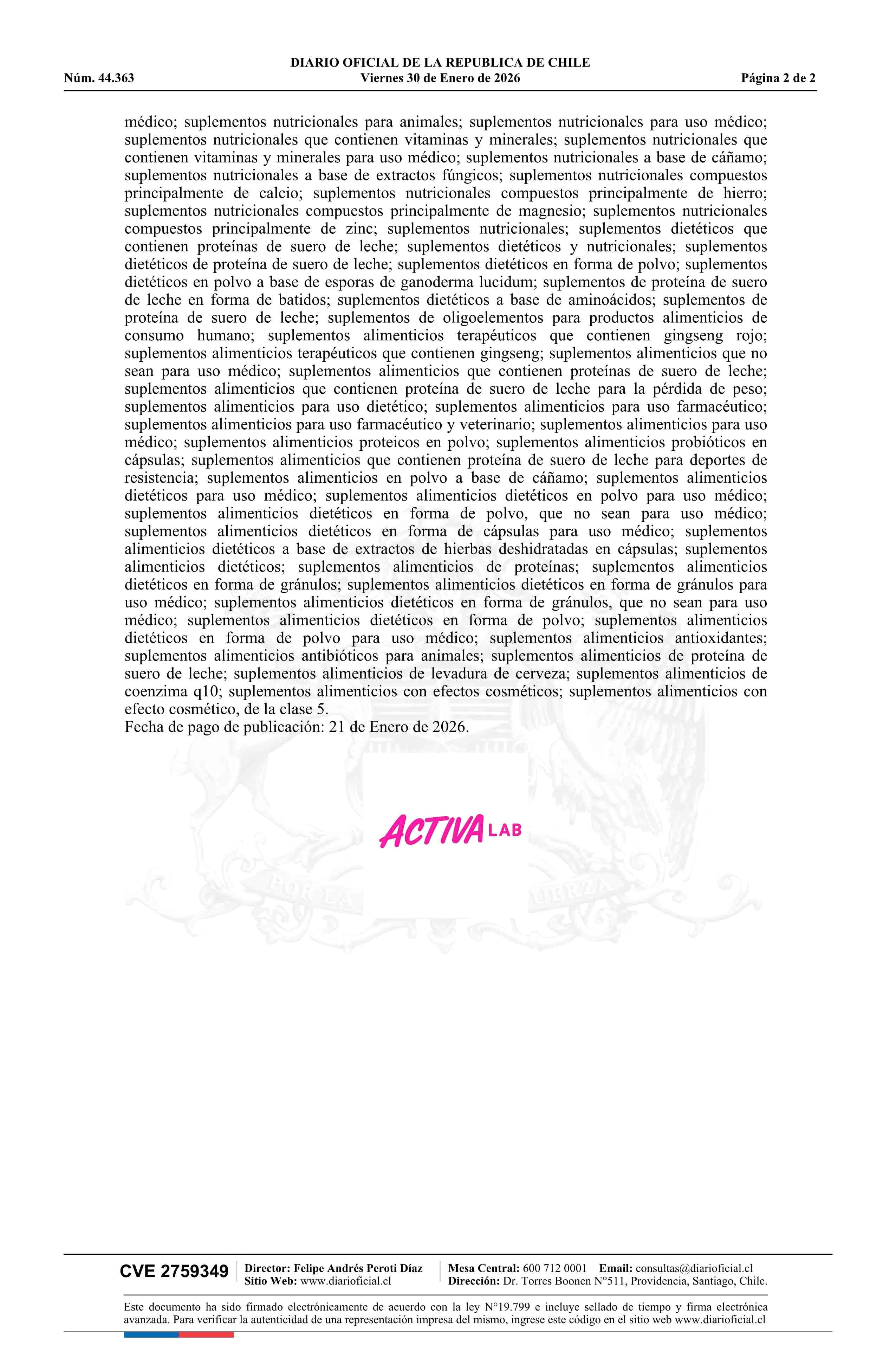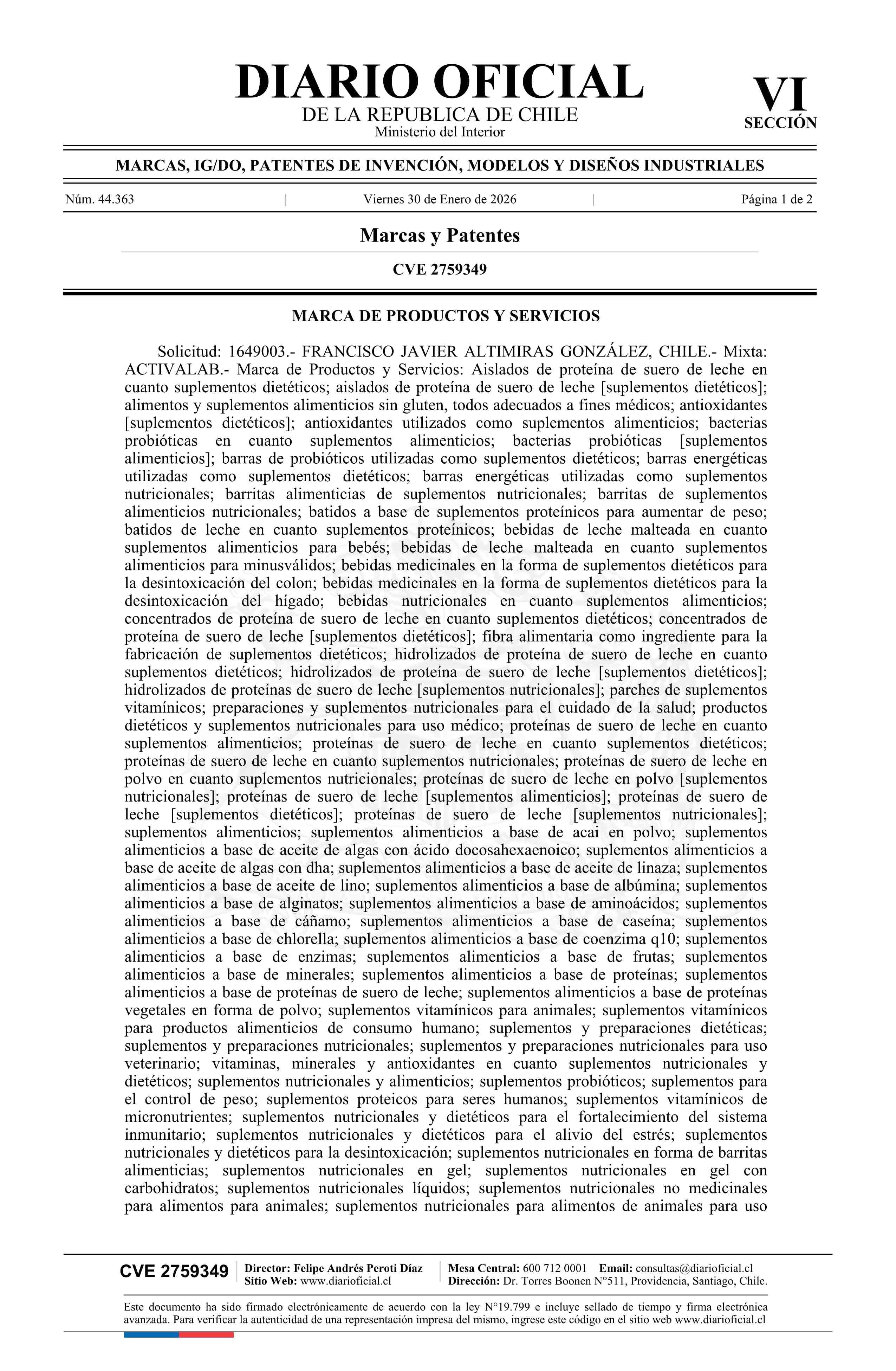Solicitud número 1649003.- ACTIVALAB 30-01-2026 Diario Oficial Edición Electrónica |