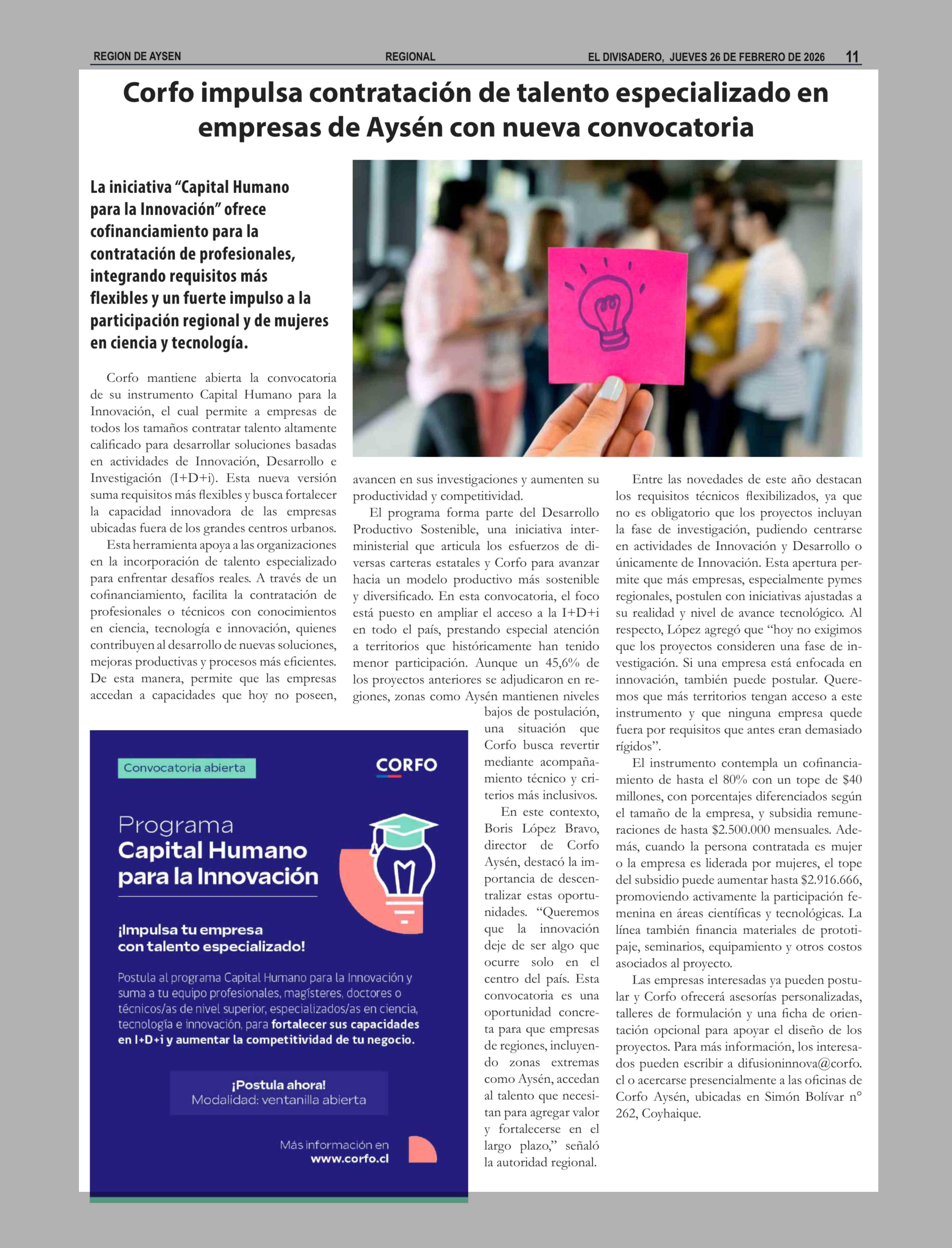 Fecha: 26-02-2026 Sector: Noticia general Región: Región Aysén del General Carlos Ibáñez del Campo