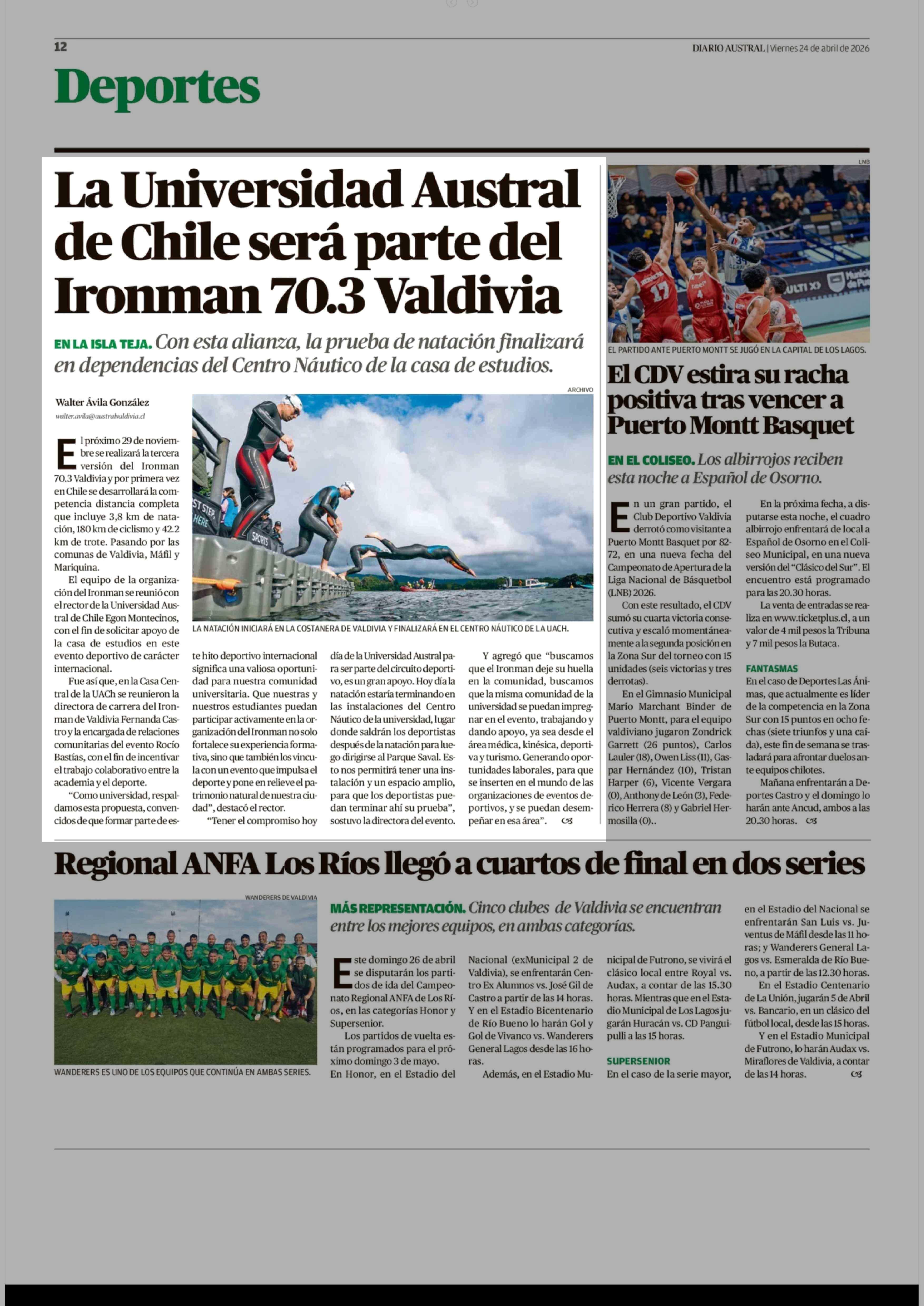 La Universidad Austral de Chile será parte del Ironman 70.3 Valdivia 24-04-2026 Diario Austral Región de Los Ríos |
