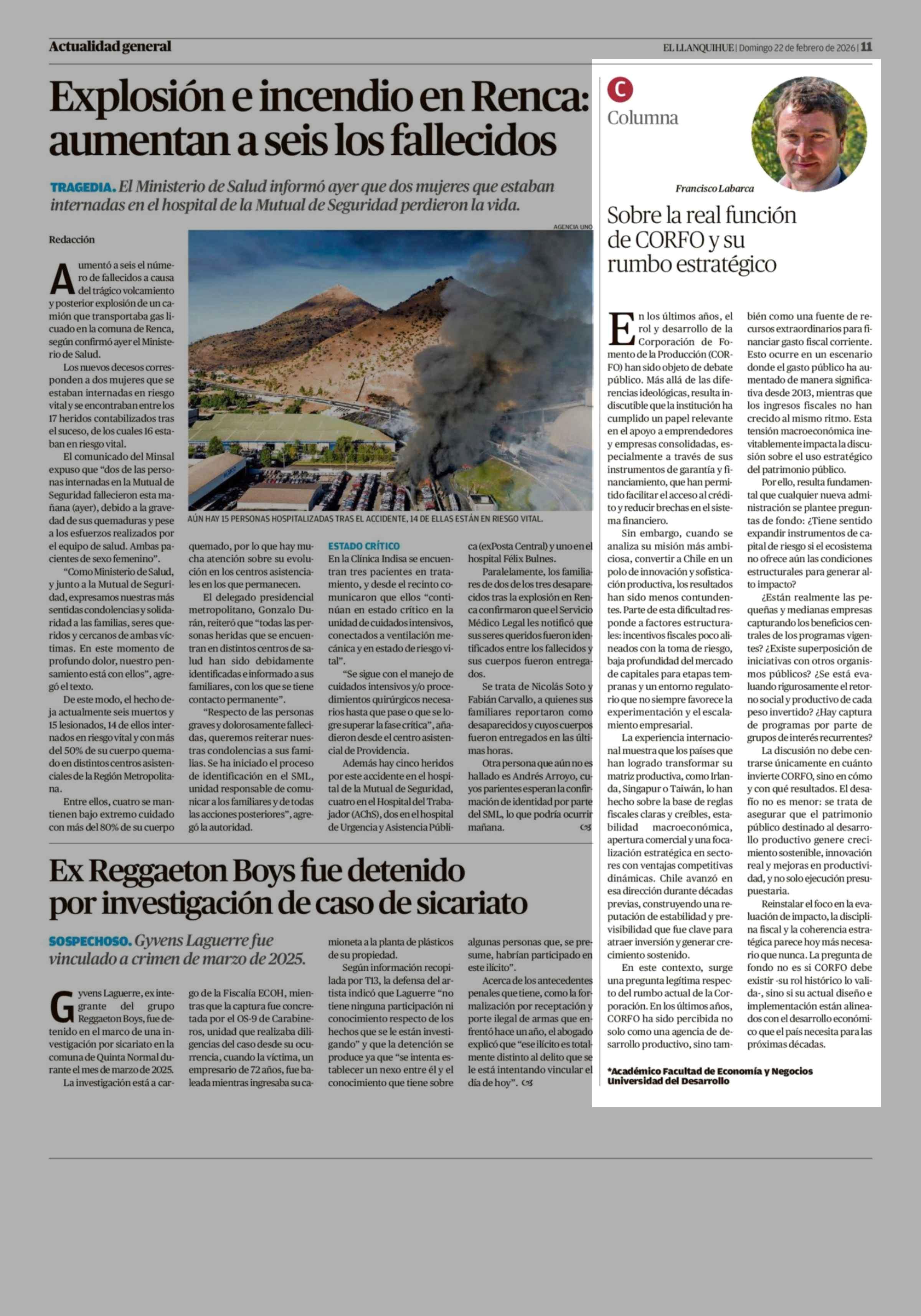Columnas de Opinión: Sobre la real función de CORFO y su rumbo estratégico 22-02-2026 El Llanquihue |