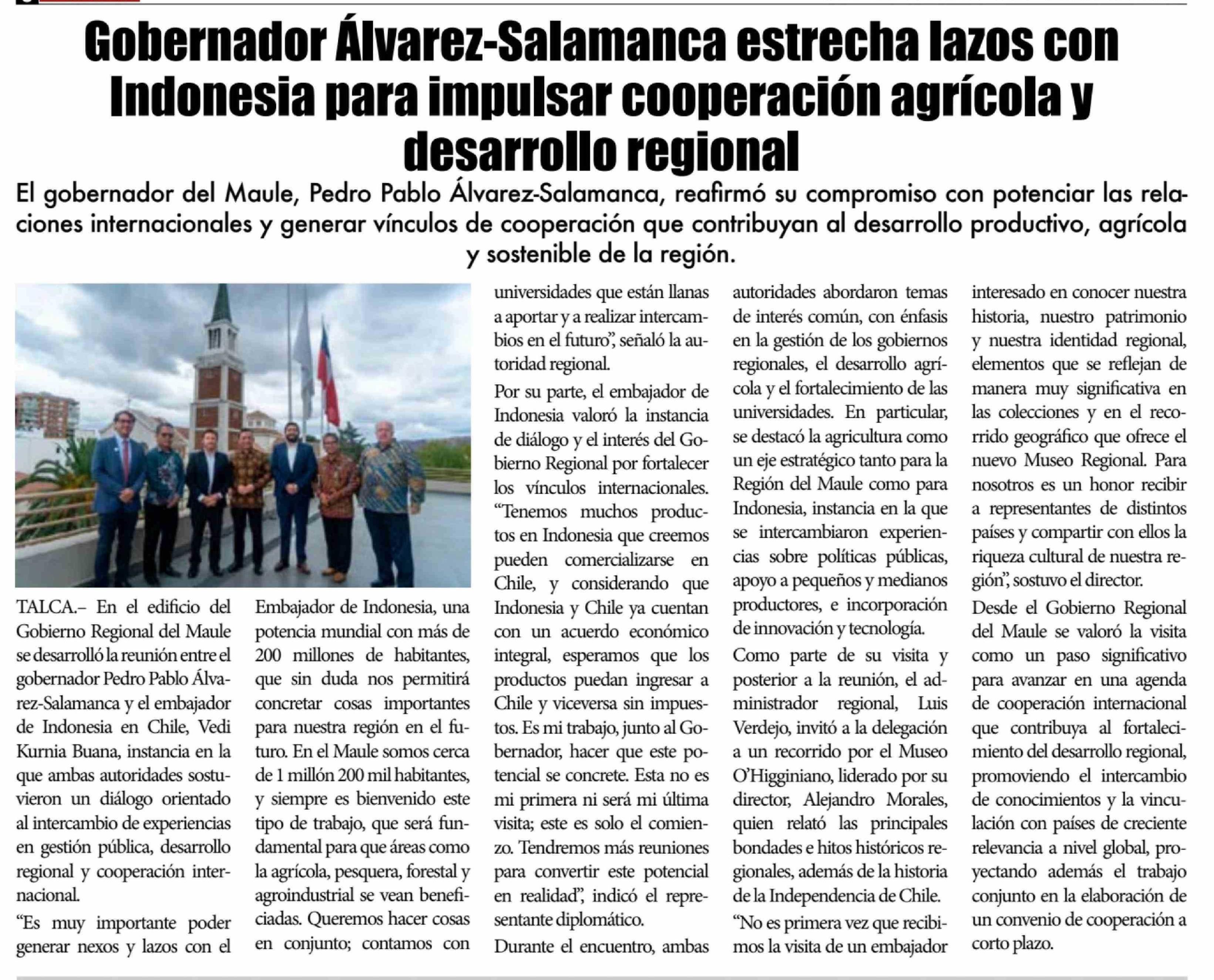Título: Gobernador Álvarez-Salamanca estrecha lazos con Indonesia para impulsar cooperación agrícola y desarrollo regional