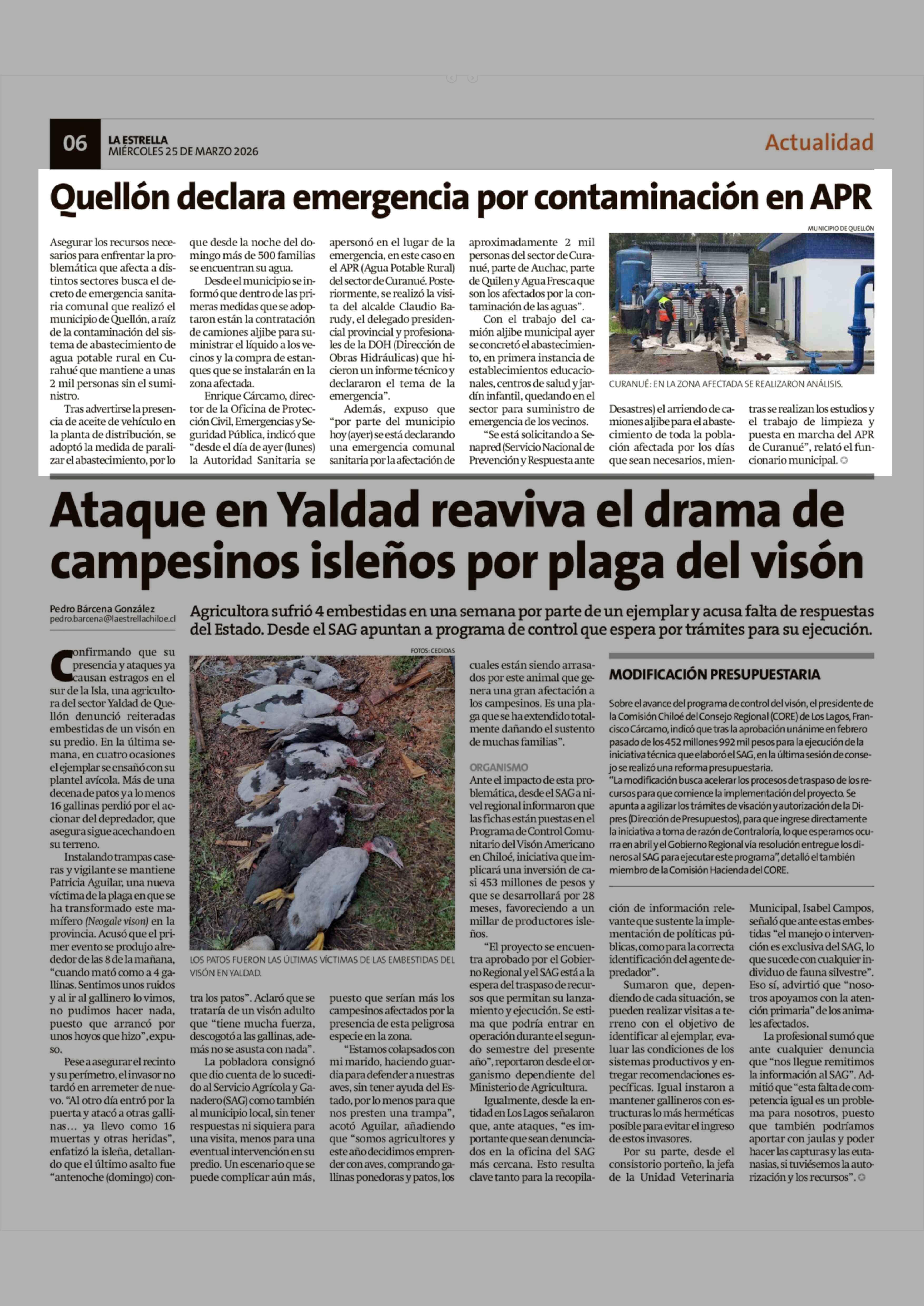 Quellón declara emergencia por contaminación en APR 25-03-2026 La Estrella de Chiloé |