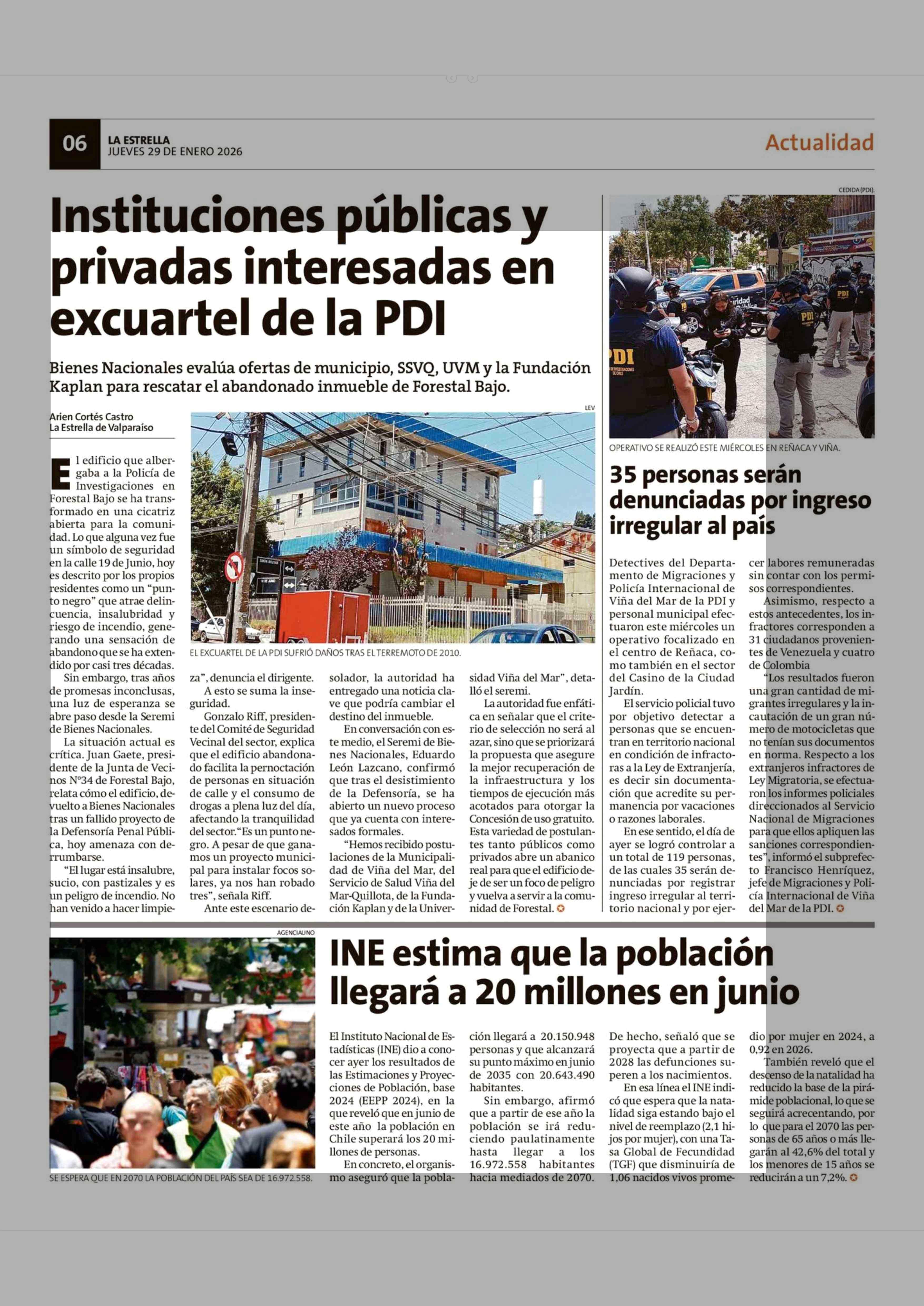 Instituciones públicas y privadas interesadas en excuartel de la PDI 29-01-2026 La Estrella de Valparaíso |