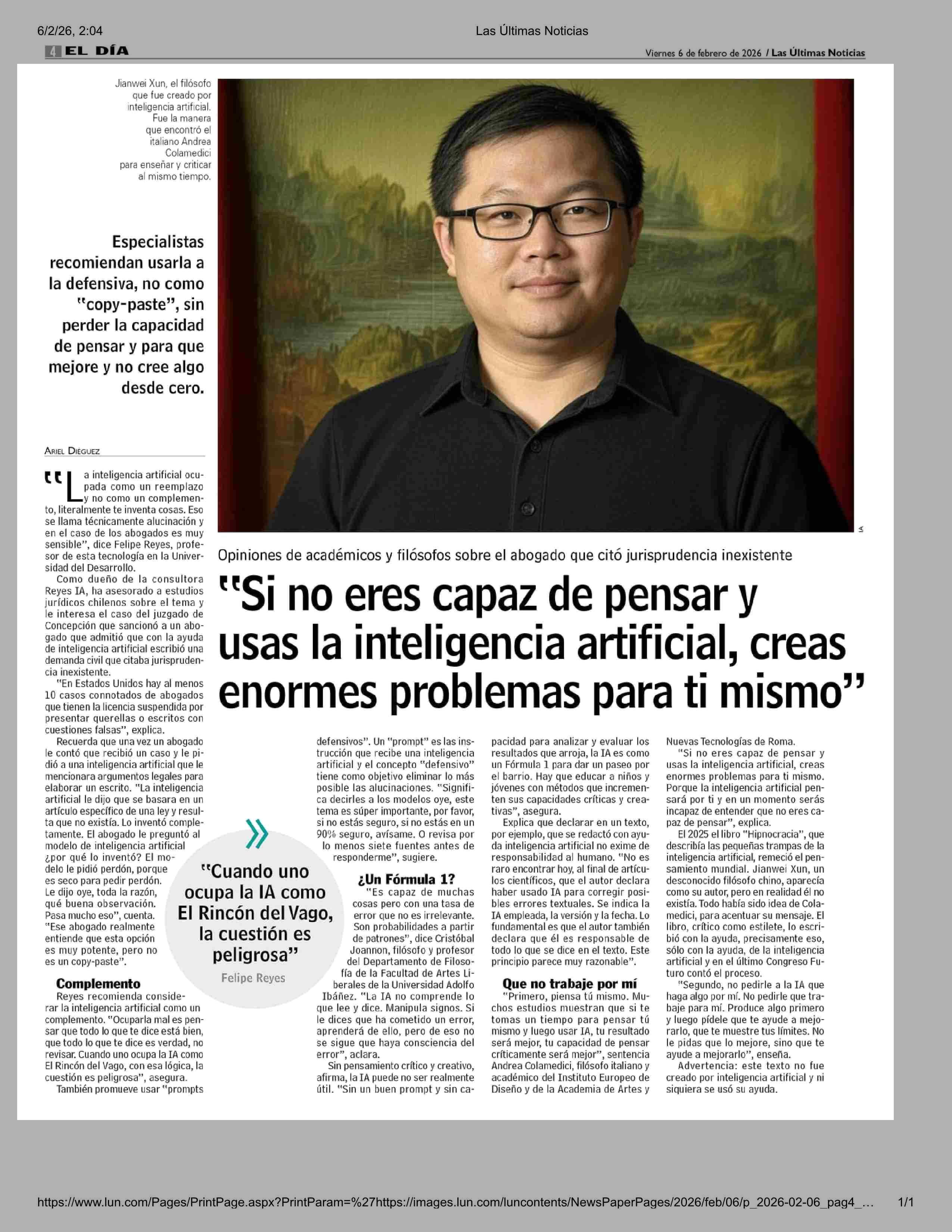 “"Si no eres capaz de pensar y usas la inteligencia artificial, creas enormes problemas para ti mismo” 06-02-2026 Las Últimas Noticias |