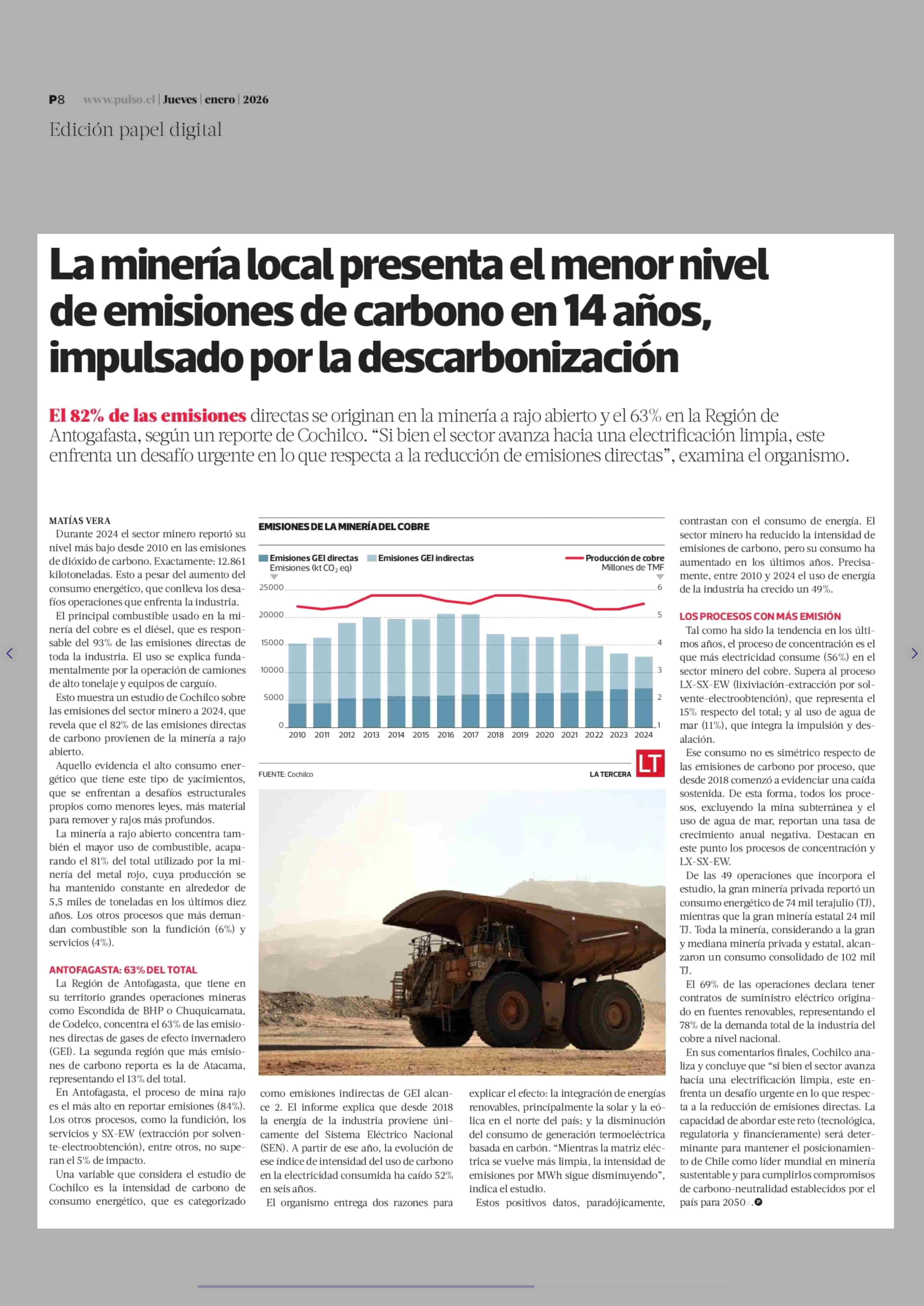 Título: La minería local presenta el menor nivel de emisiones de carbono en 14 años, impulsado por la descarbonización