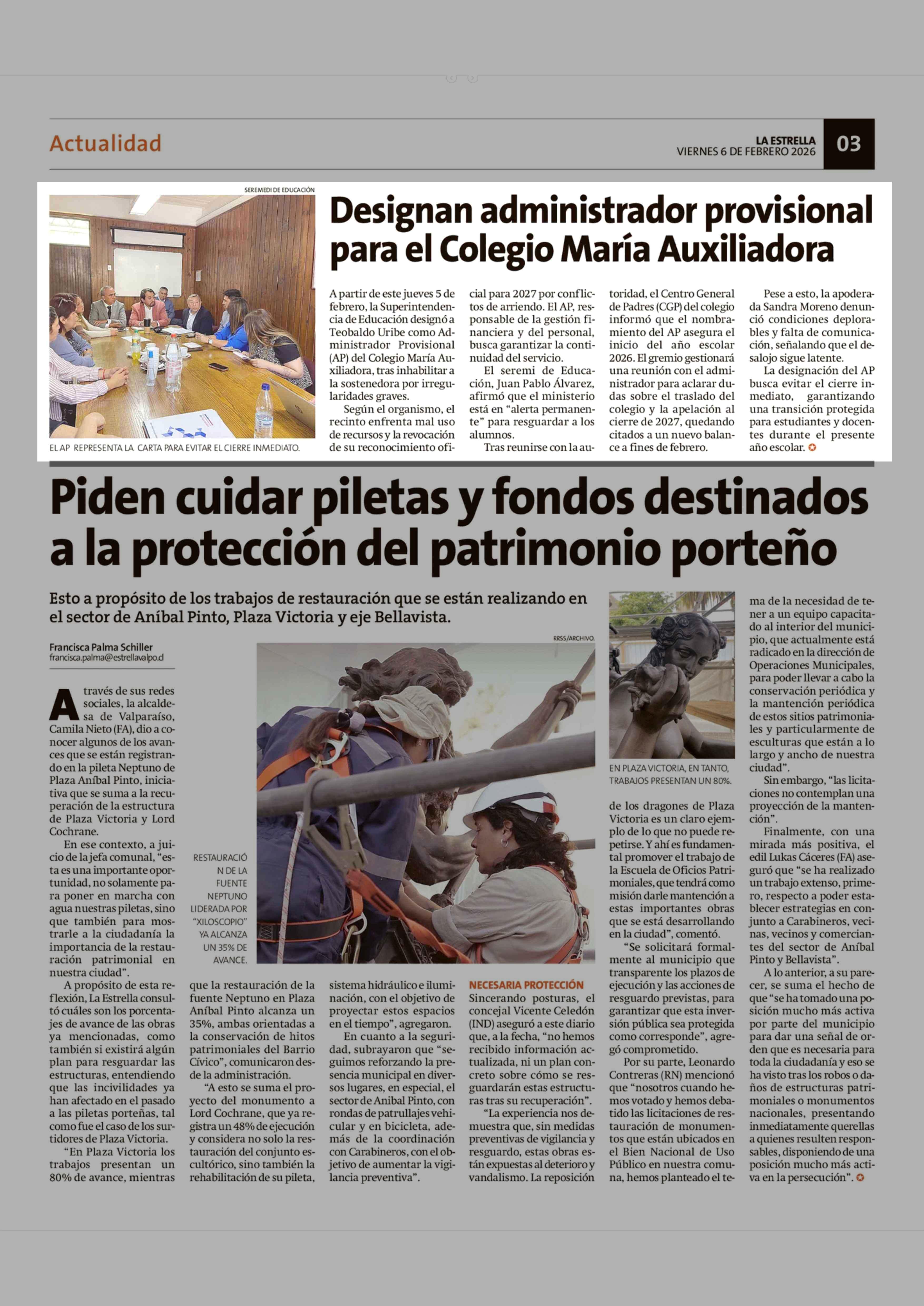 Designan administrador provisional para el Colegio María Auxiliadora 06-02-2026 La Estrella de Valparaíso |