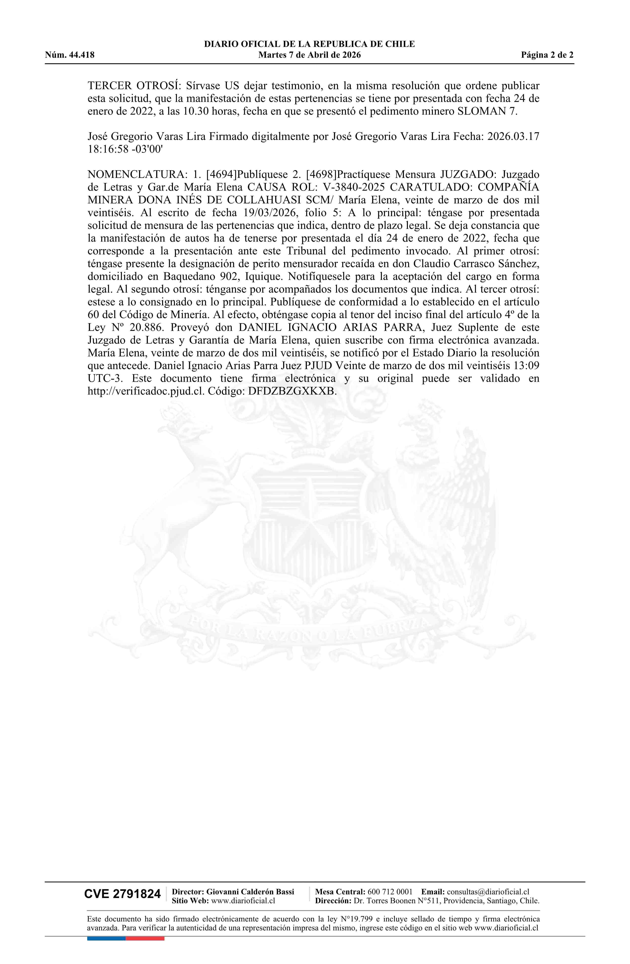 07-04-2026 DIARIO OFICIAL CHILE - BOLETÍN OFICIAL DE MINERÍA