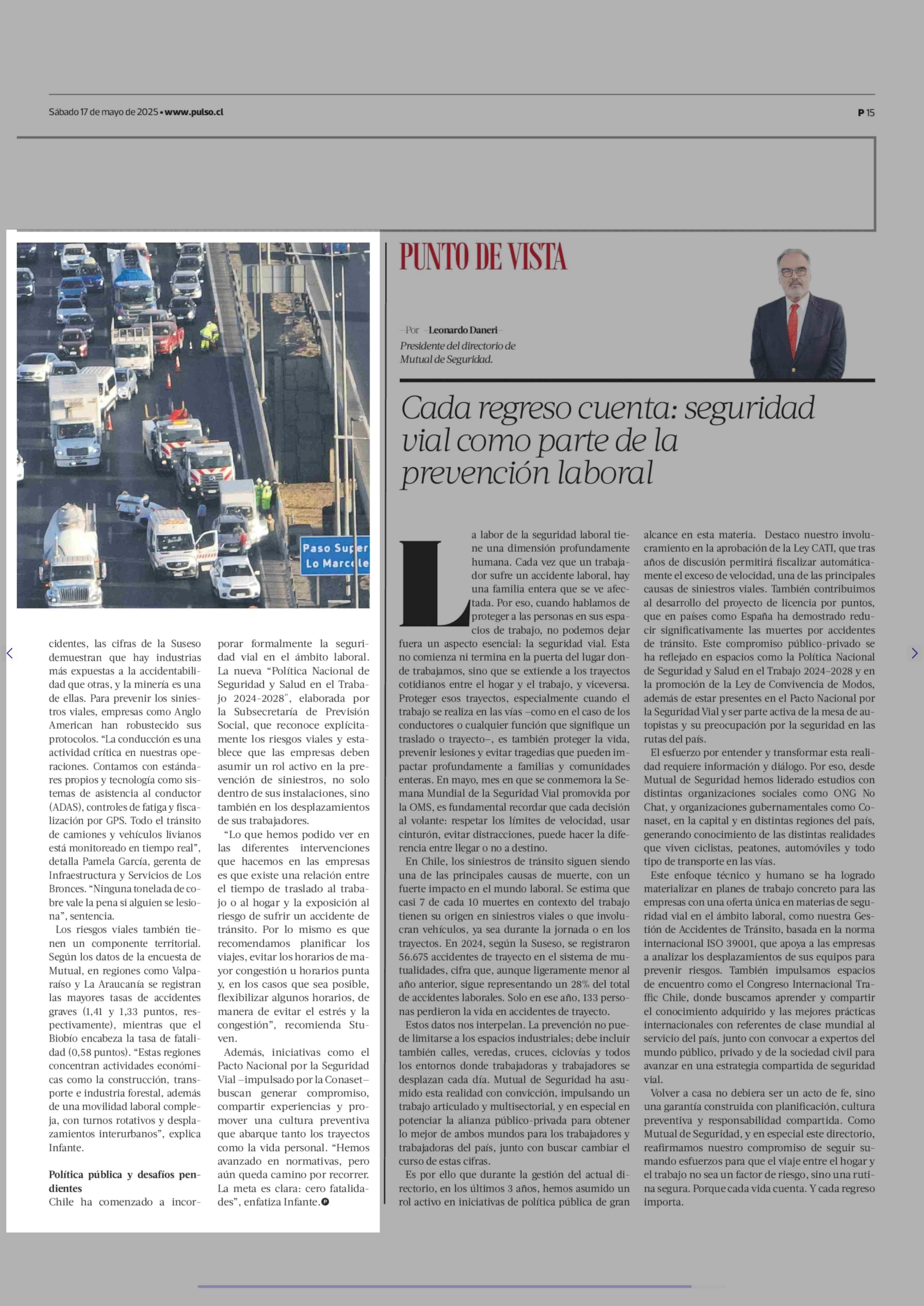 El alto costo de los siniestros viales laborales: cuando el trayecto también es un riesgo 17-05-2025 La Tercera |