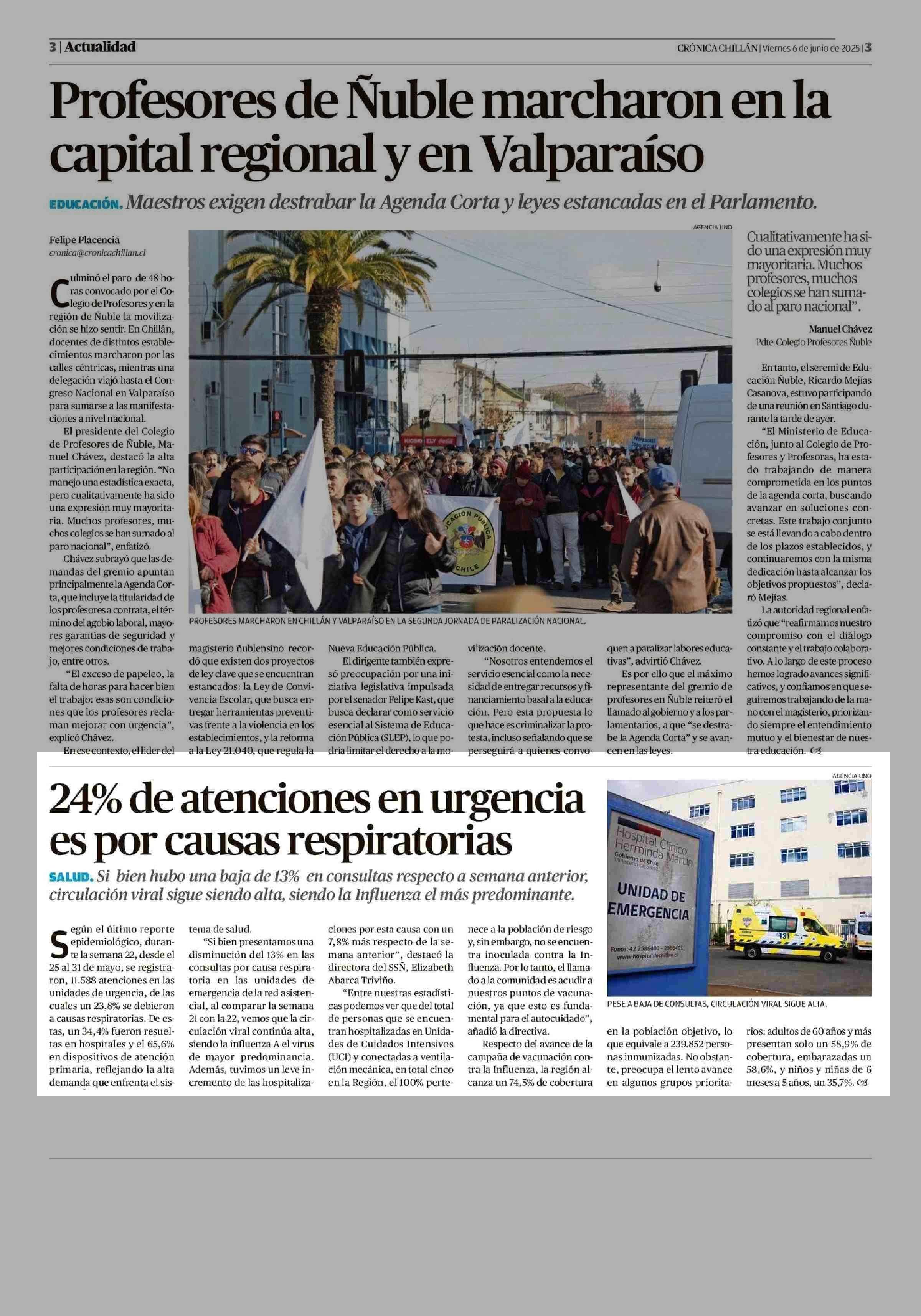 24% De atenciones en urgencia es por causas respiratorias 06-06-2025 Crónica de Chillán |