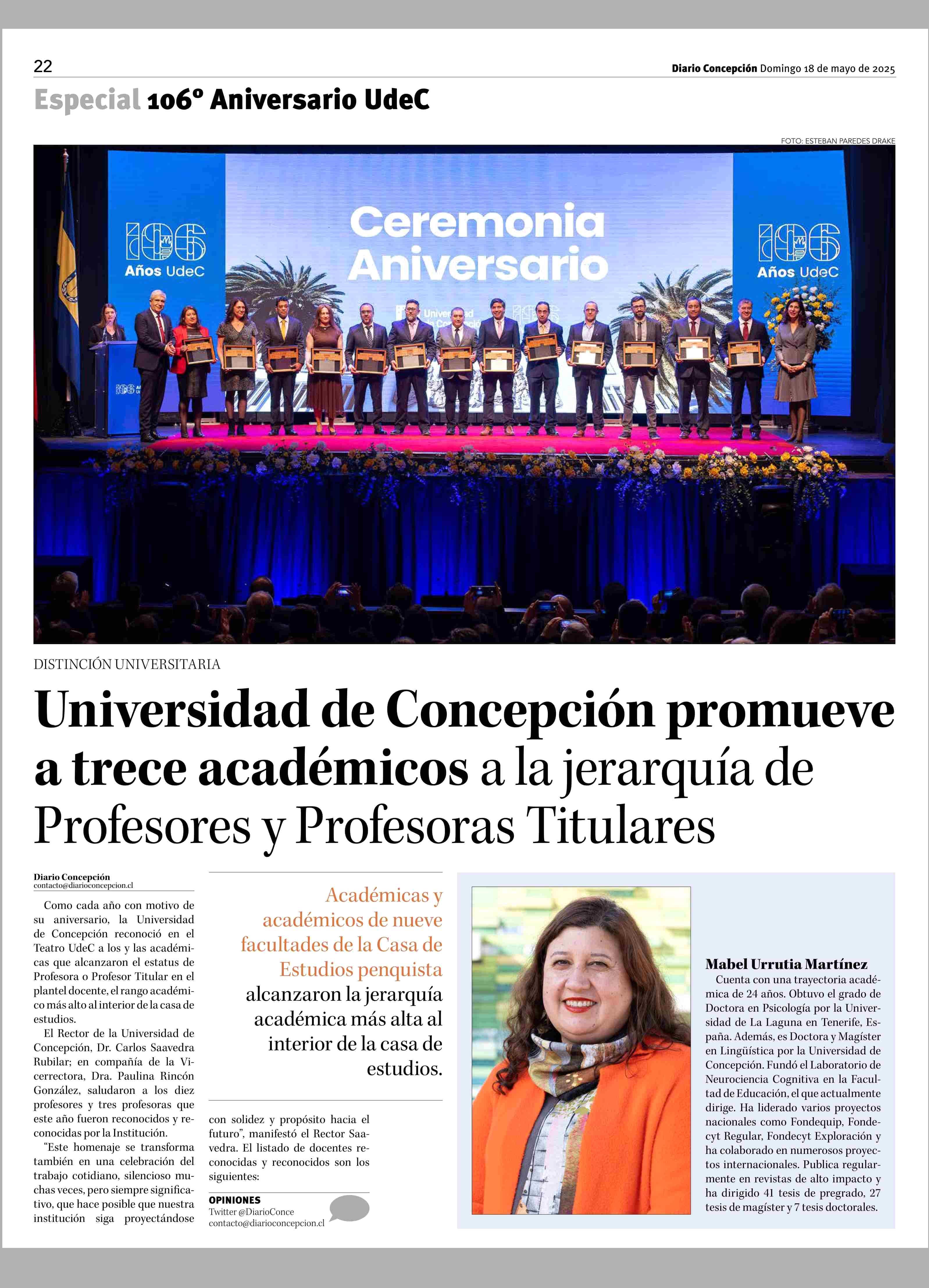 Universidad de Concepción promueve a trece académicos a la jerarquía de Profesores y Profesoras Titulares 18-05-2025 Diario Concepción |