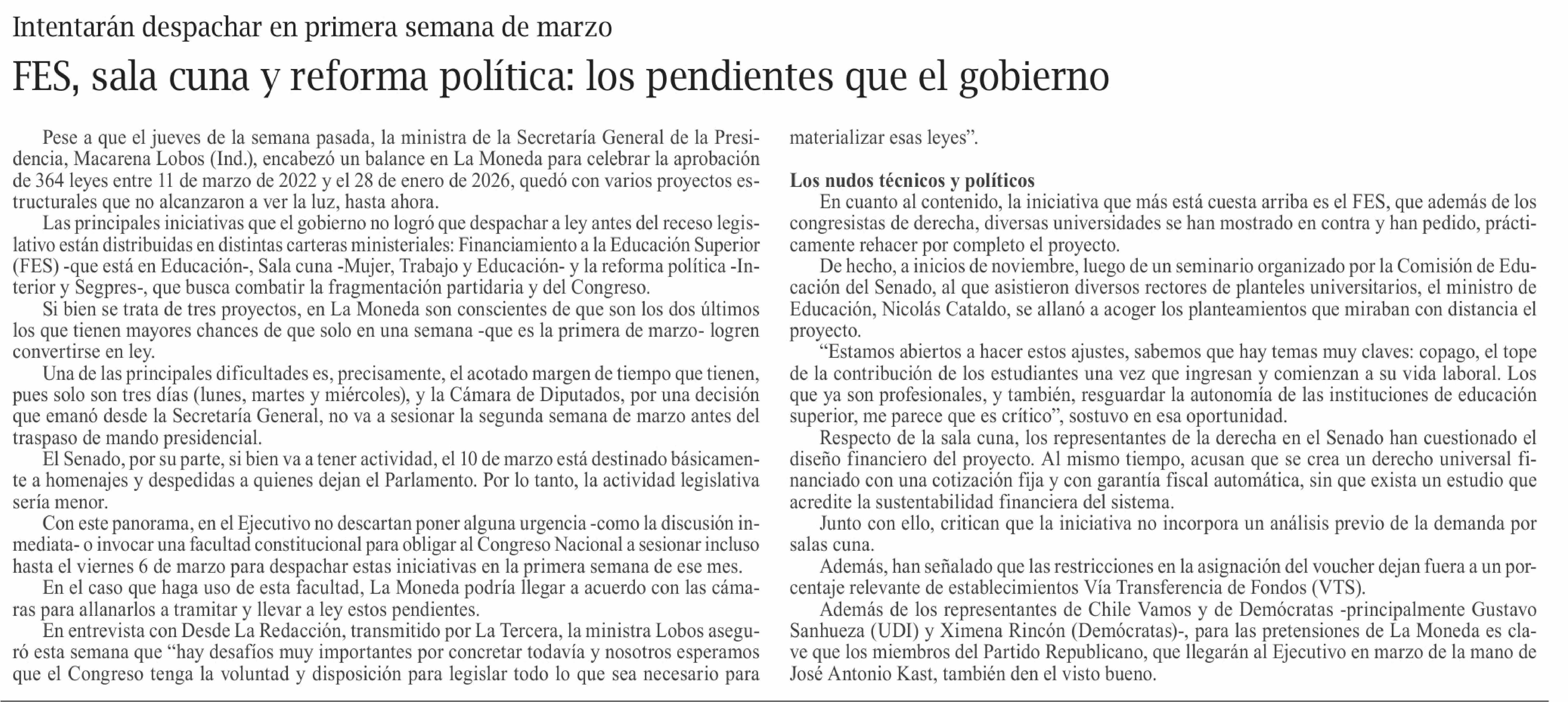 Título: FES, sala cuna y reforma política: los pendientes que el gobierno