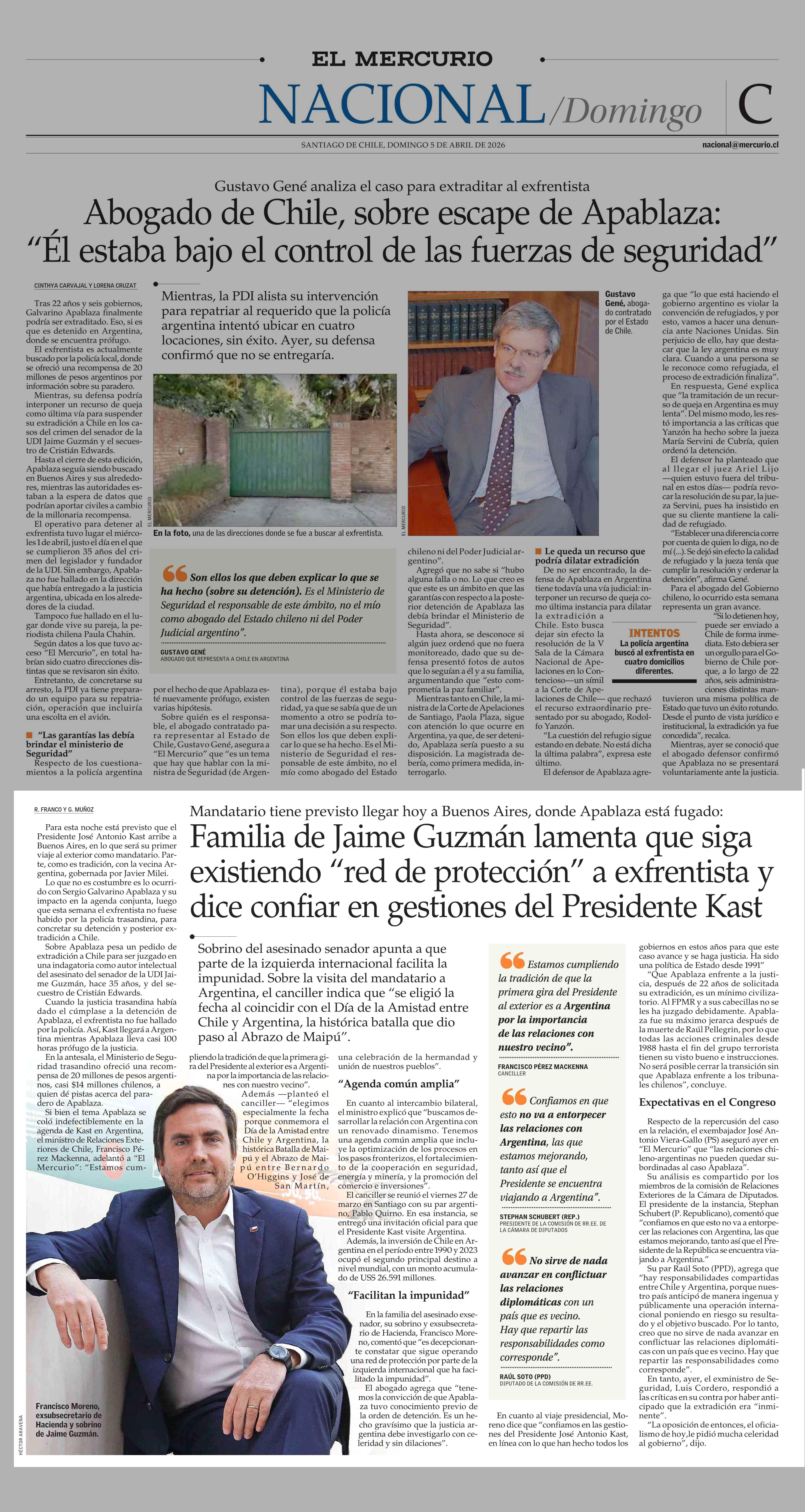 Familia de Jaime Guzmán lamenta que siga existiendo “red de protección” a exfrentista y dice confiar en gestiones del Presidente Kast 05-04-2026 El Mercurio |