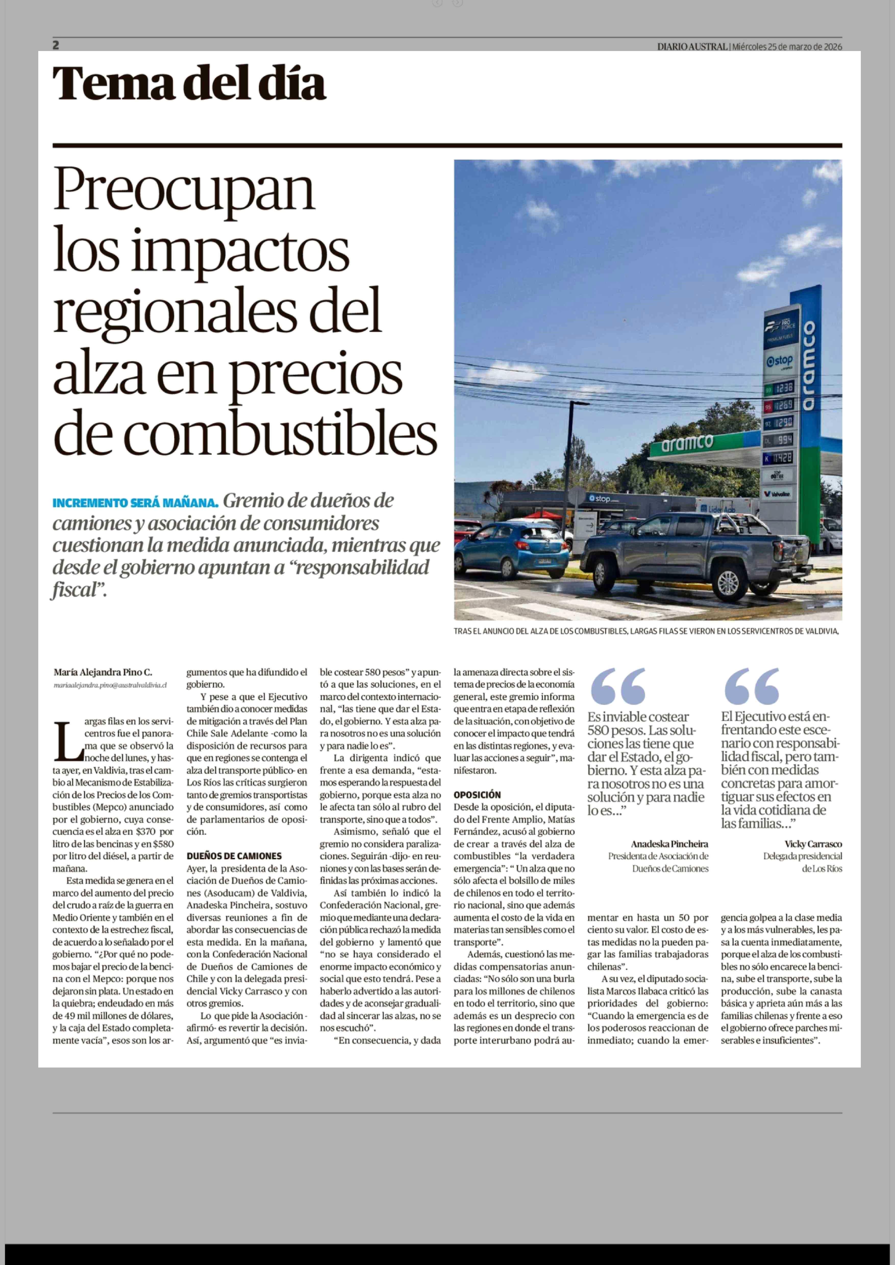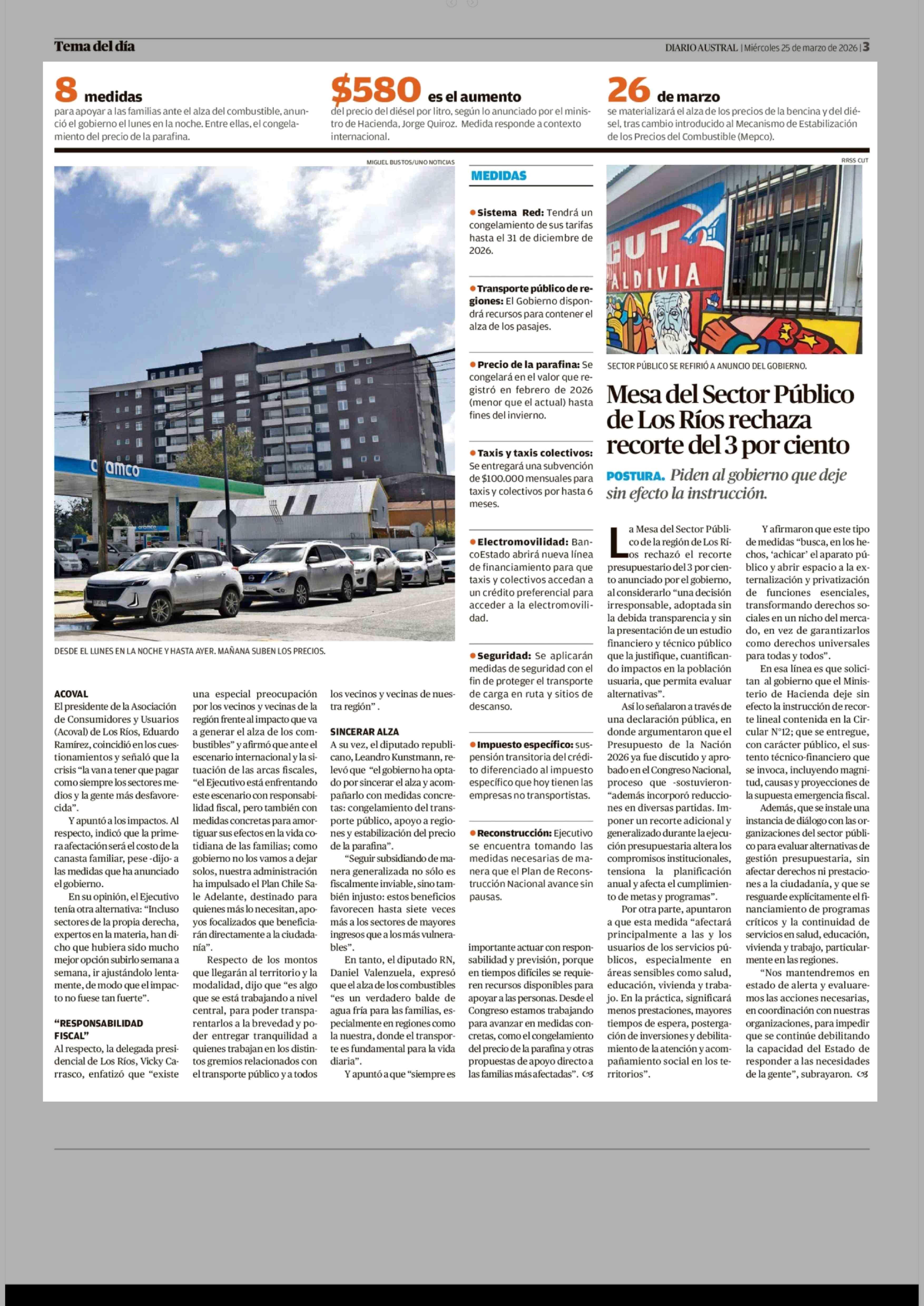 Preocupan los impactos regionales del alza en precios de combustibles 25-03-2026 Diario Austral Región de Los Ríos |
