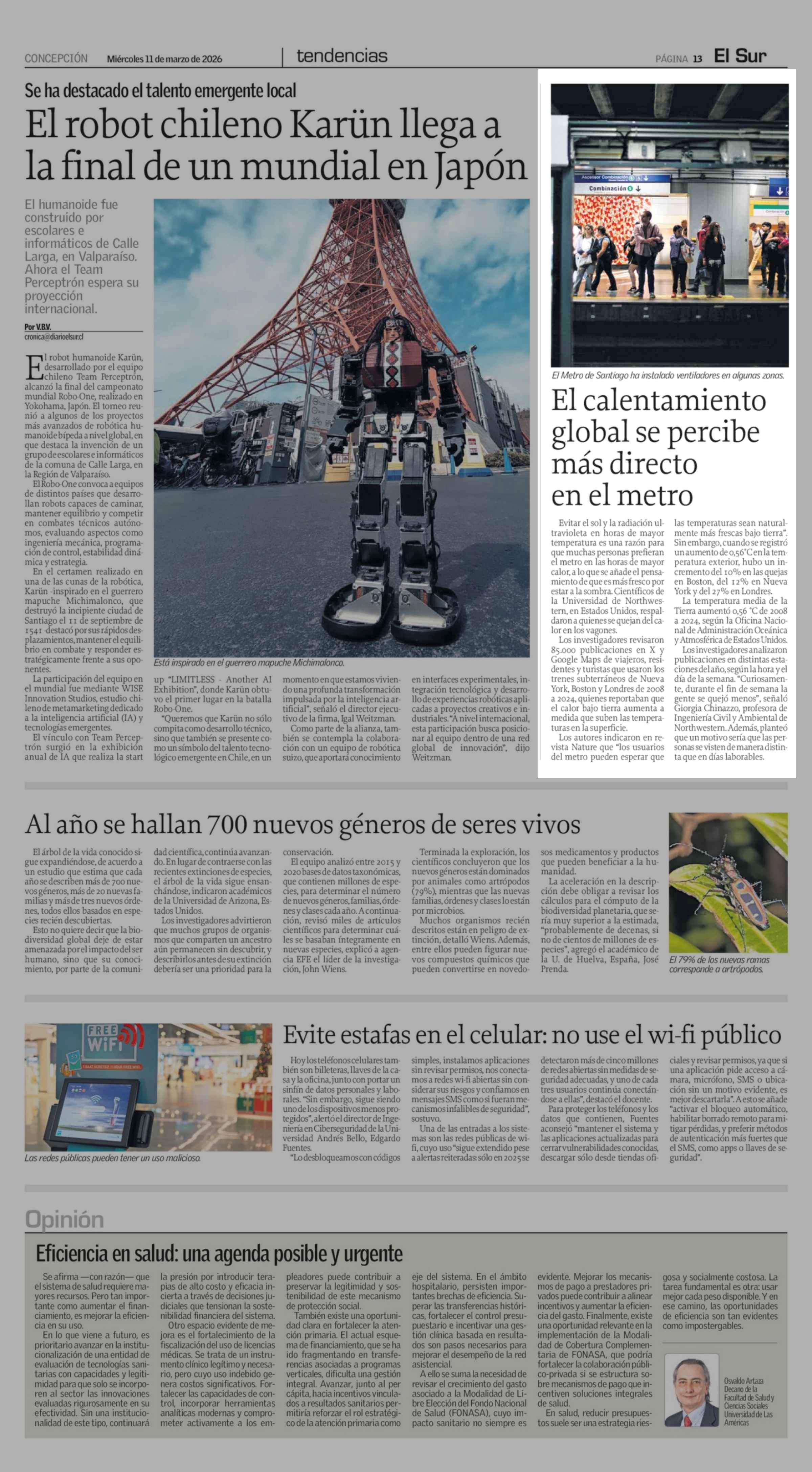 El calentamiento global se percibe más directo en el metro 11-03-2026 El Sur |