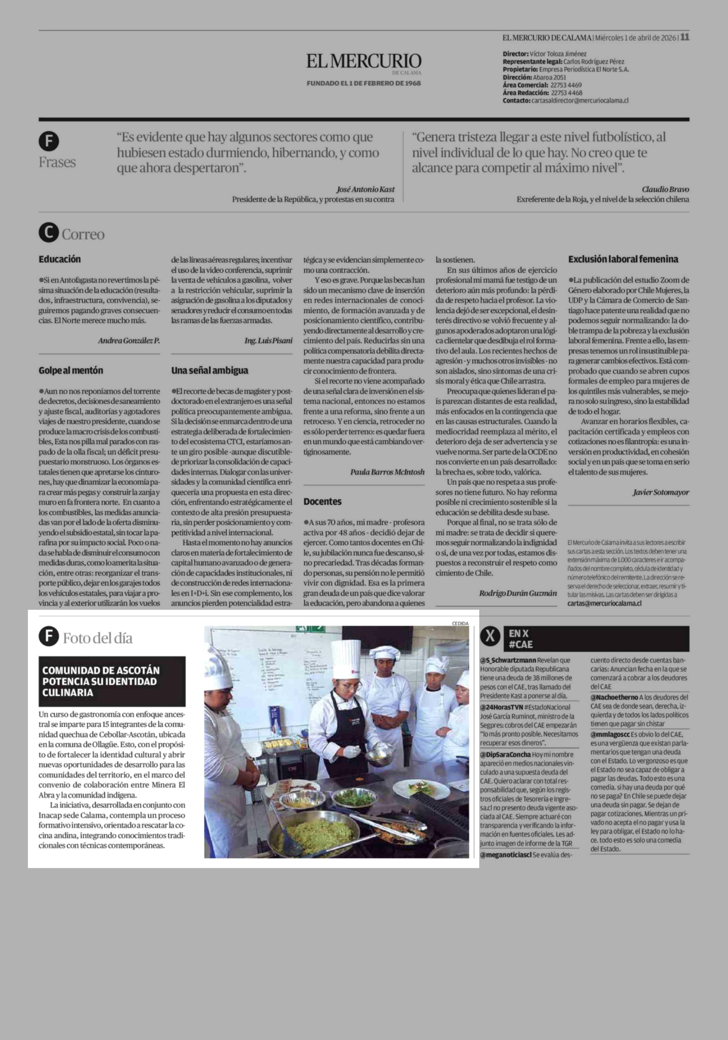 Fecha: 01-04-2026 Sector: Noticia general Región: Región de Antofagasta