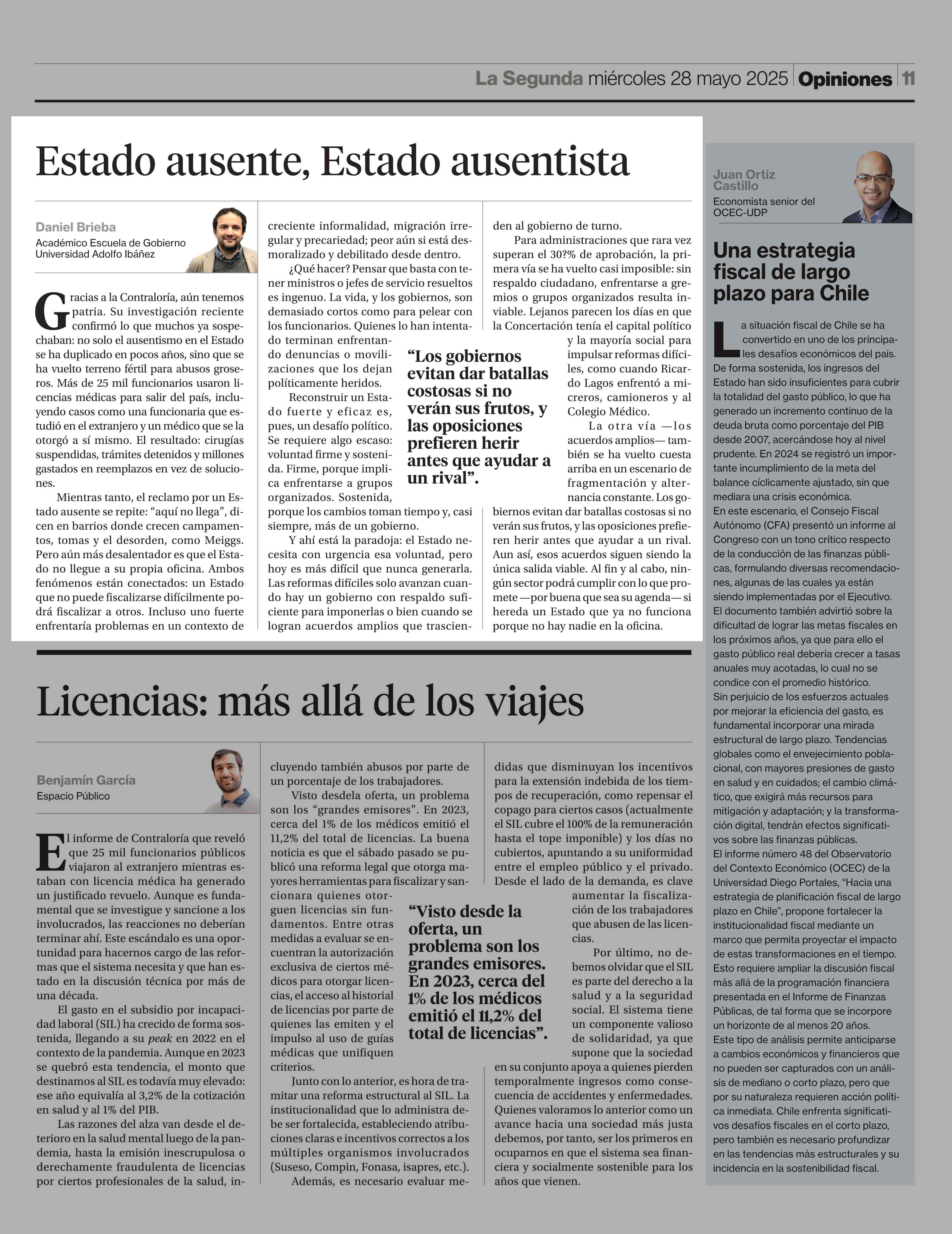COLUMNAS DE OPINIÓN: Estado ausente, Estado ausentista 28-05-2025 La Segunda |