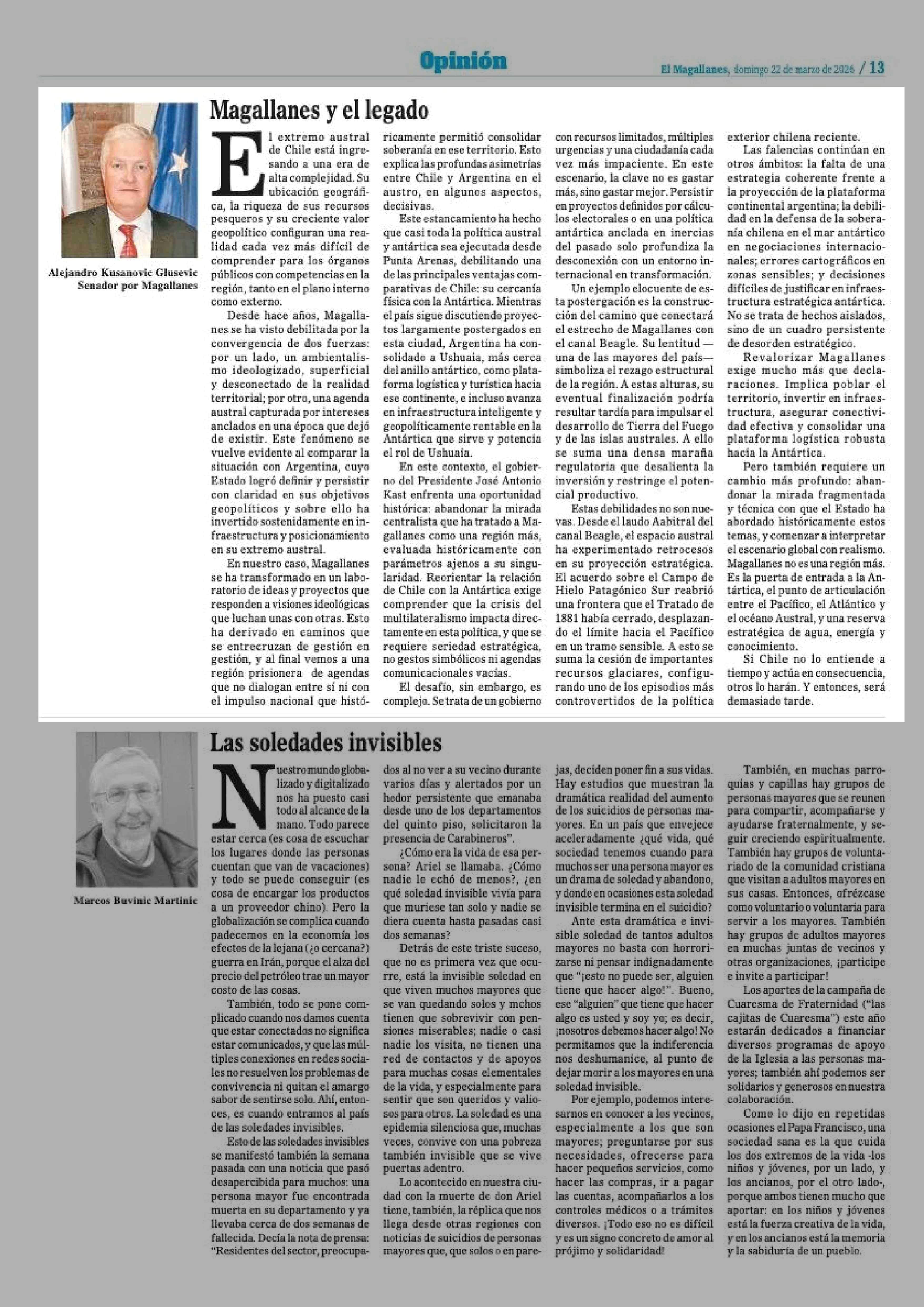 | Fecha: | 22-03-2026 | Sector: | Columnas de Opinión | Región: | Región de Magallanes y de la Antártica Chilena |