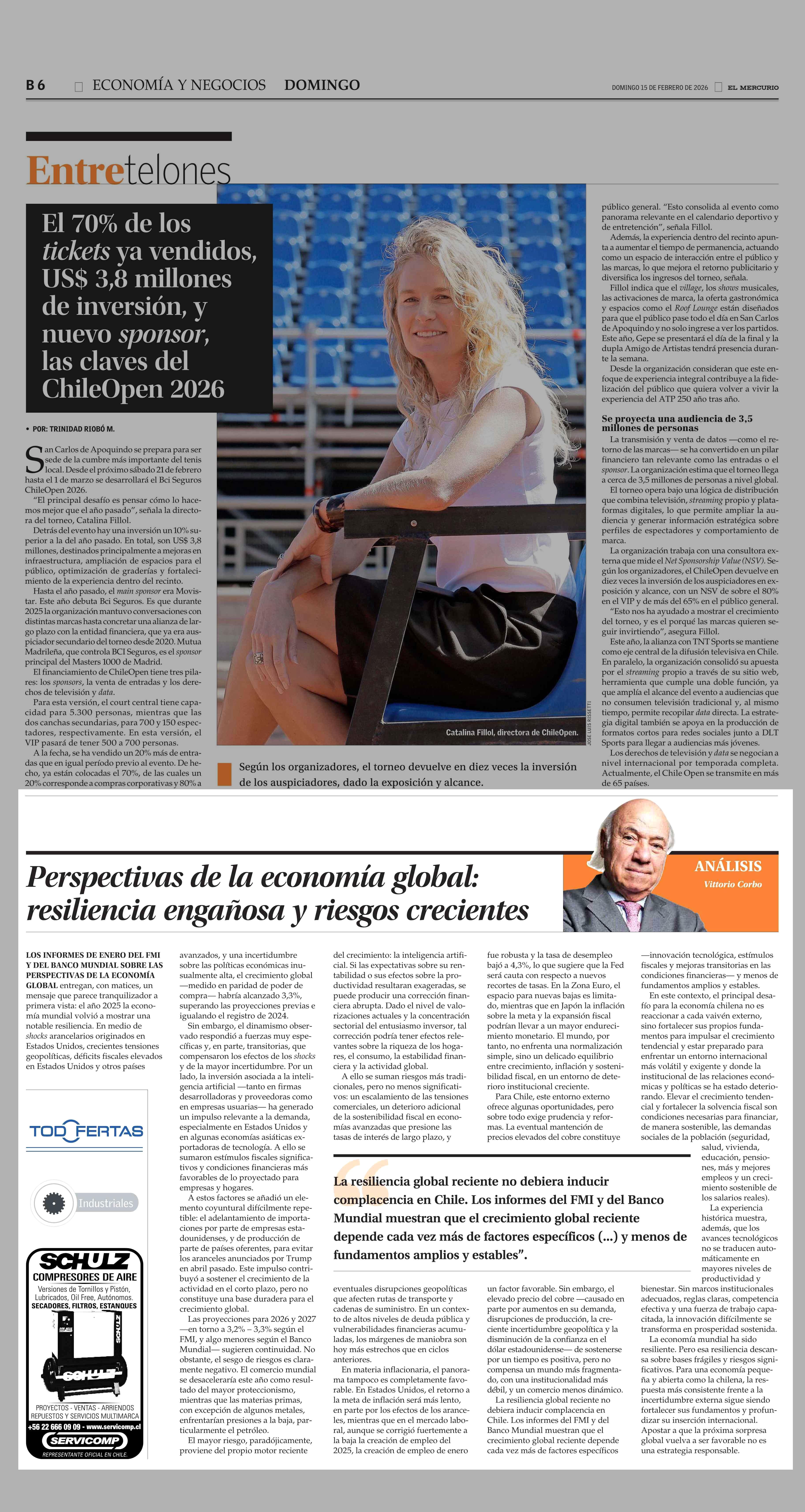 Columnas de Opinión: Perspectivas de la economía global: resiliencia engañosa y riesgos crecientes 15-02-2026 El Mercurio |