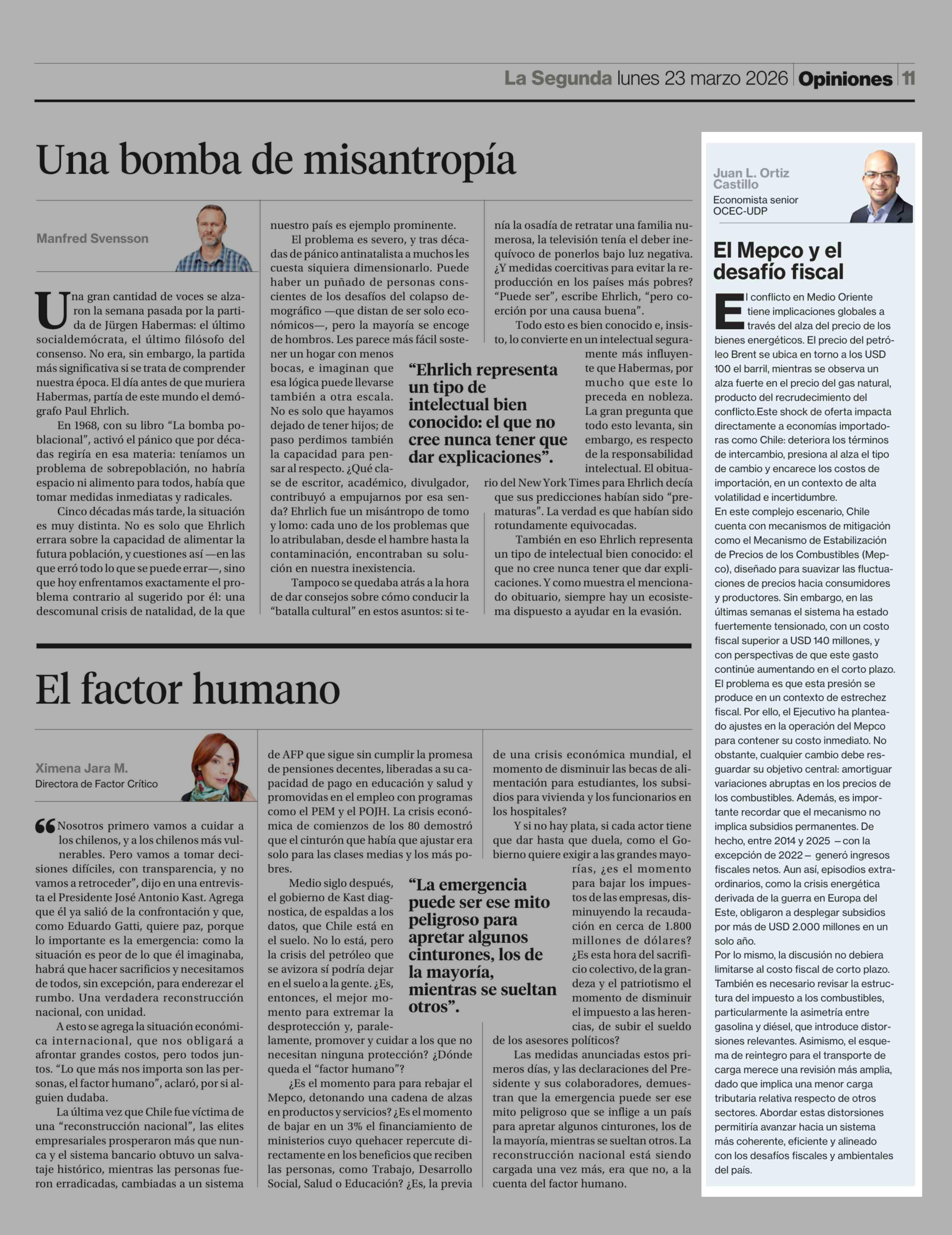 Columnas de Opinión: El Mepco y el desafío fiscal 23-03-2026 La Segunda |