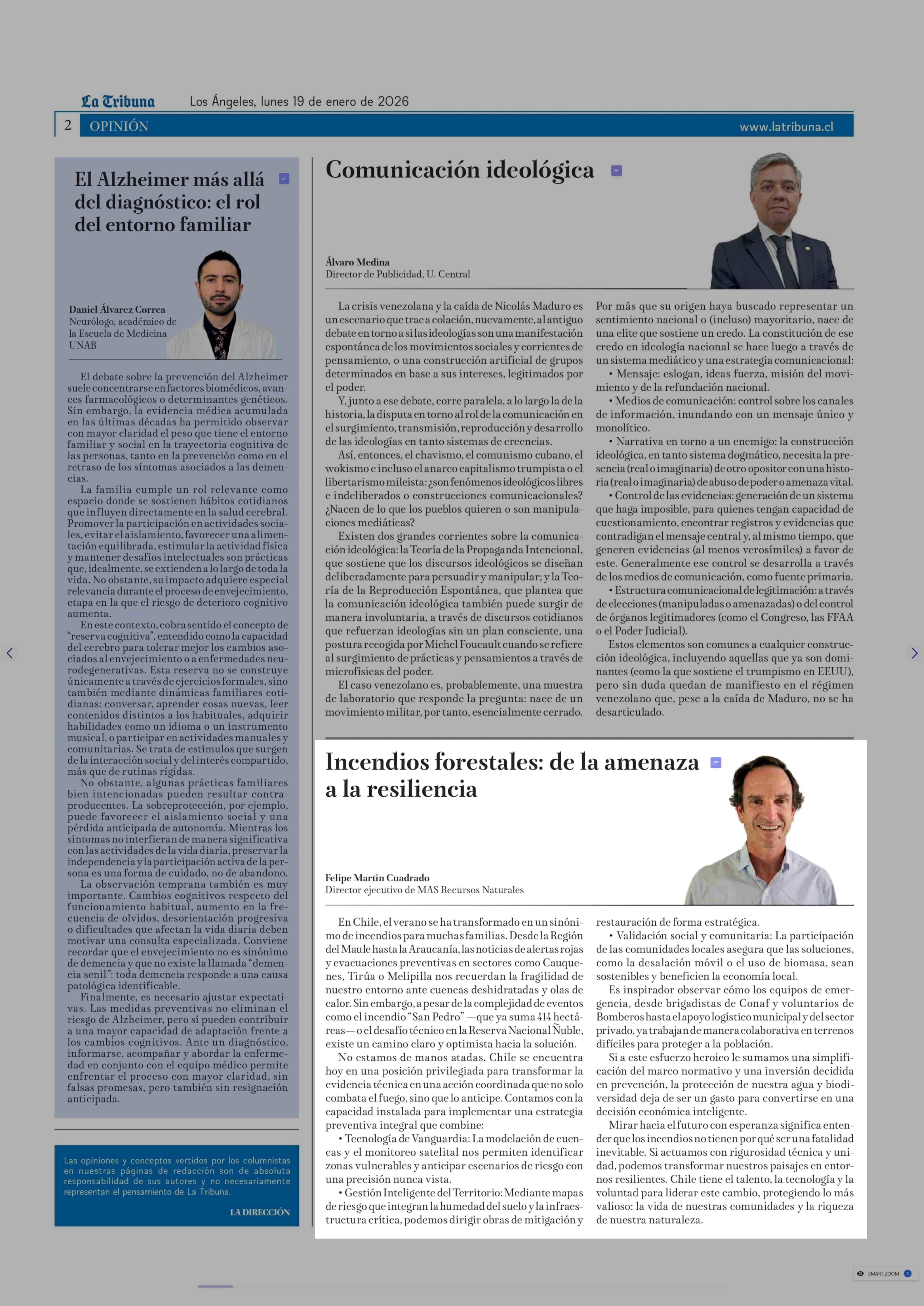 Columnas de Opinión: Incendios forestales: de la amenaza a la resiliencia 19-01-2026 La Tribuna |