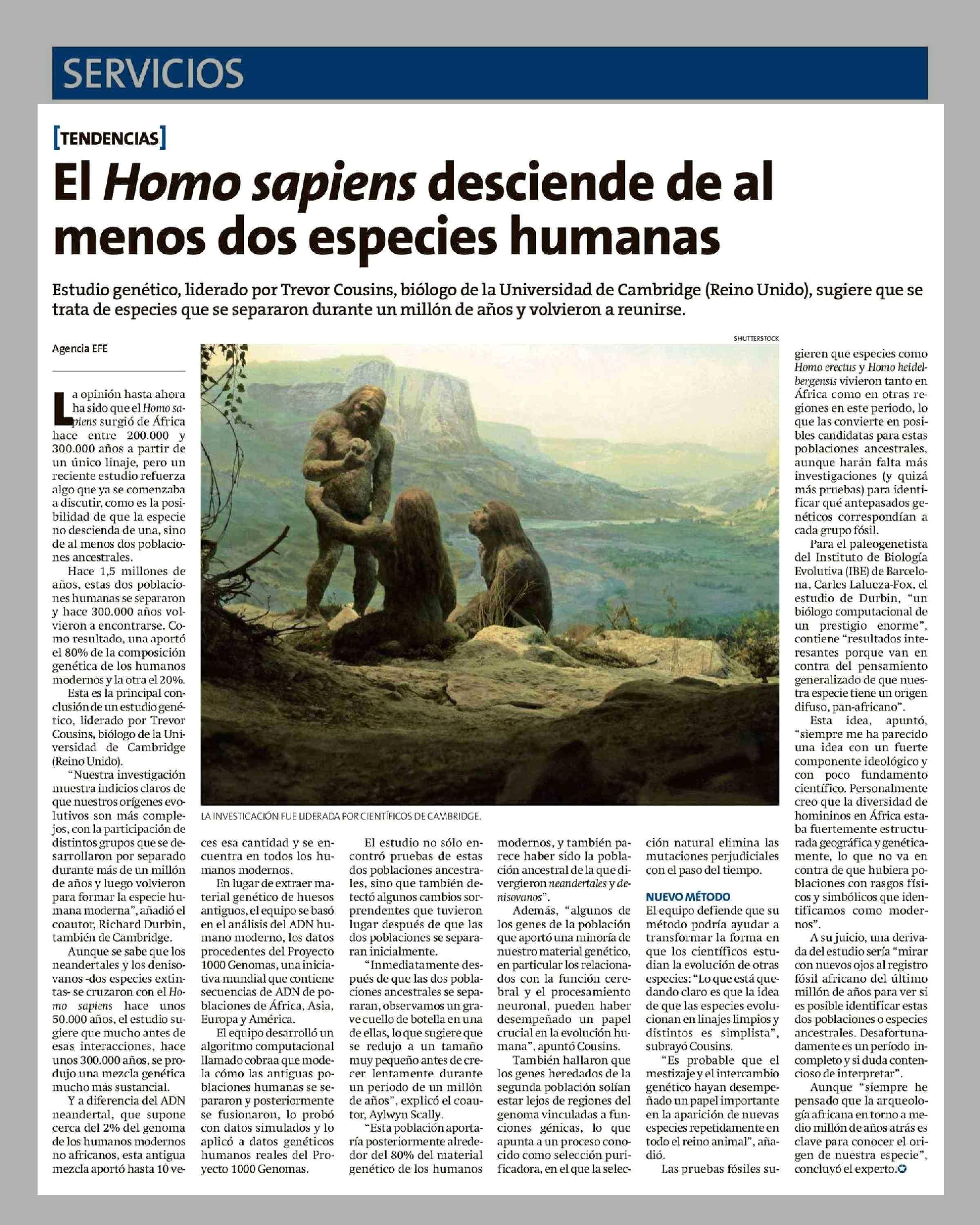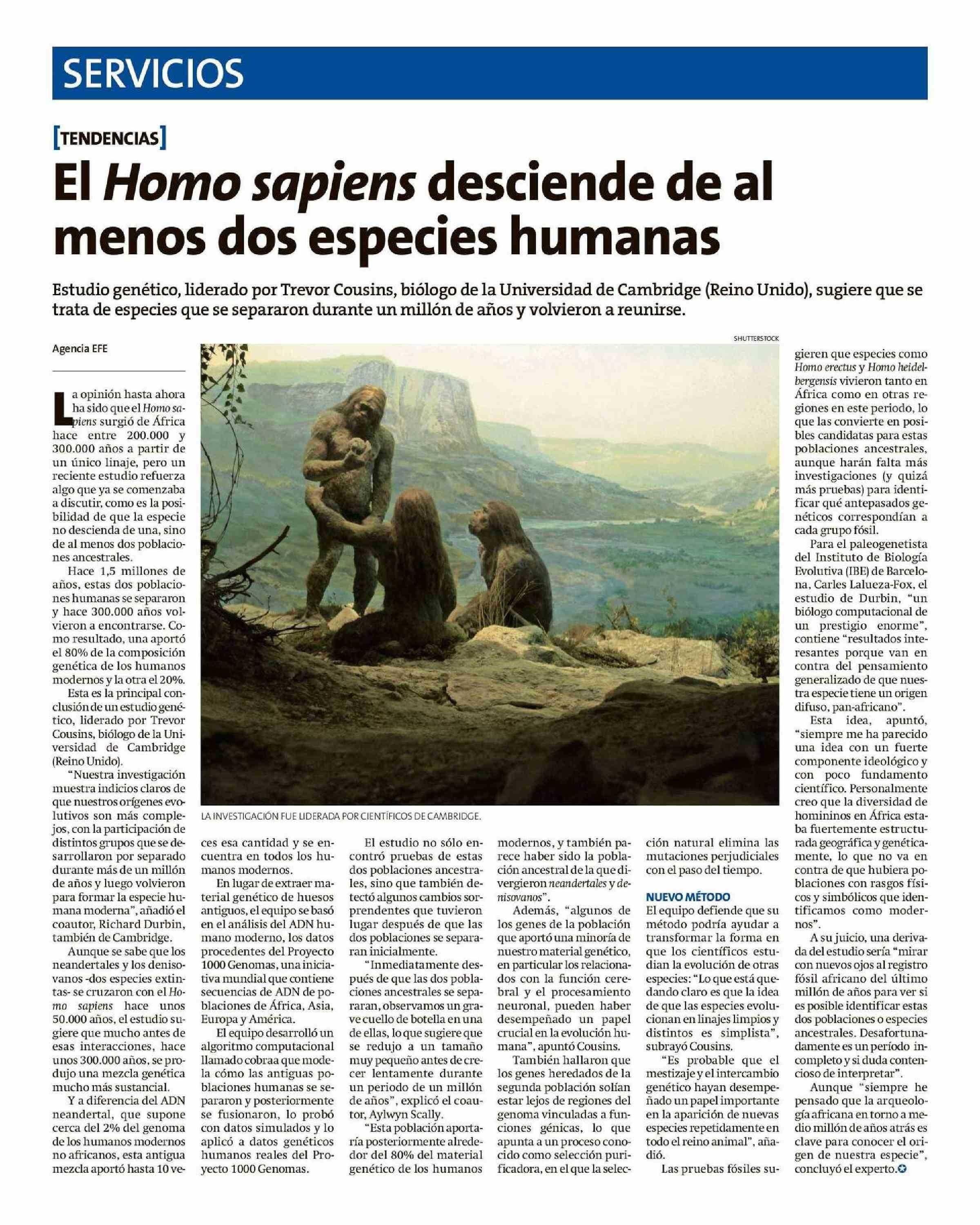 | Título: | El Homo sapiens desciende de al menos dos especies humanas |