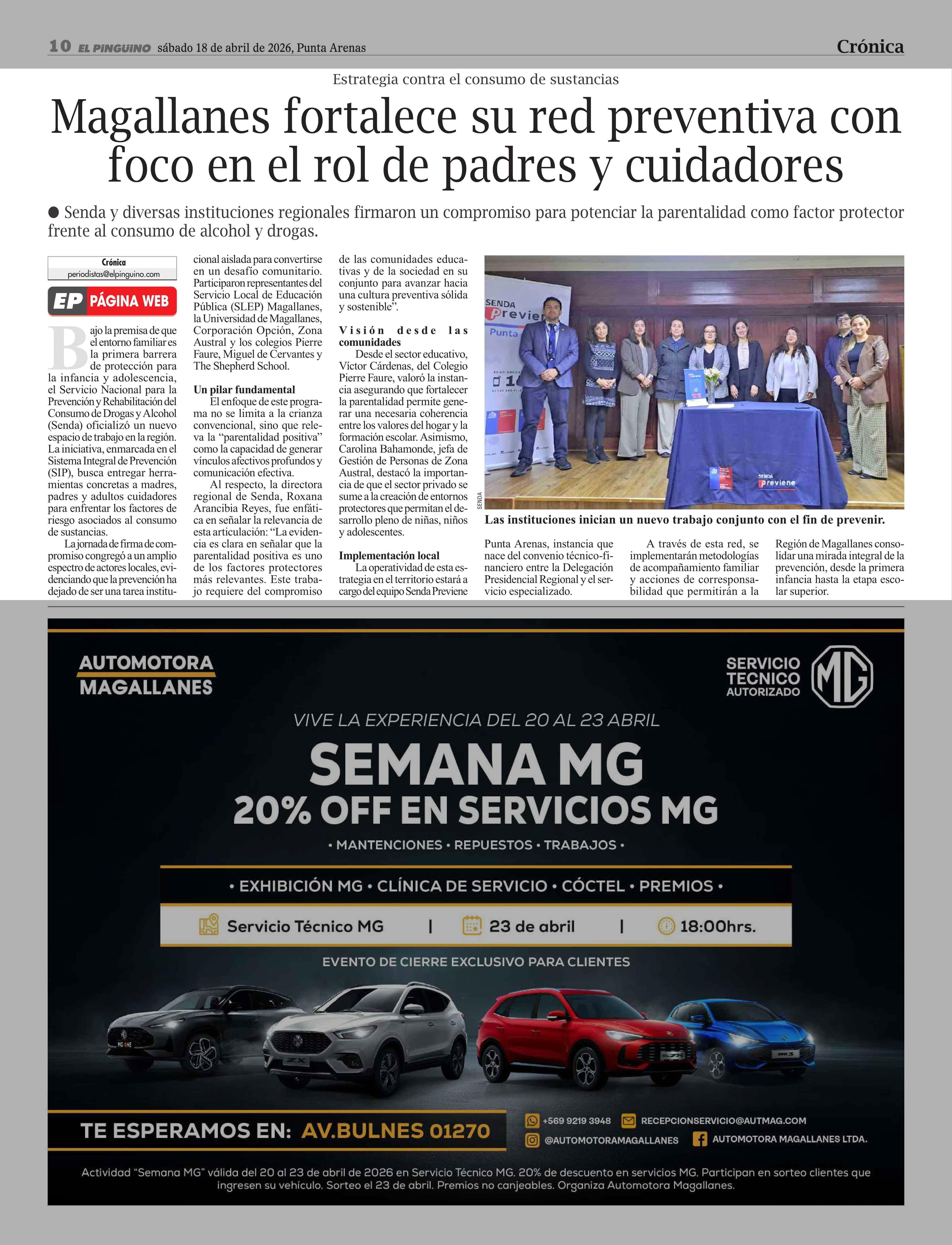 Magallanes fortalece su red preventiva con foco en el rol de padres y cuidadores 18-04-2026 El Pingüino |