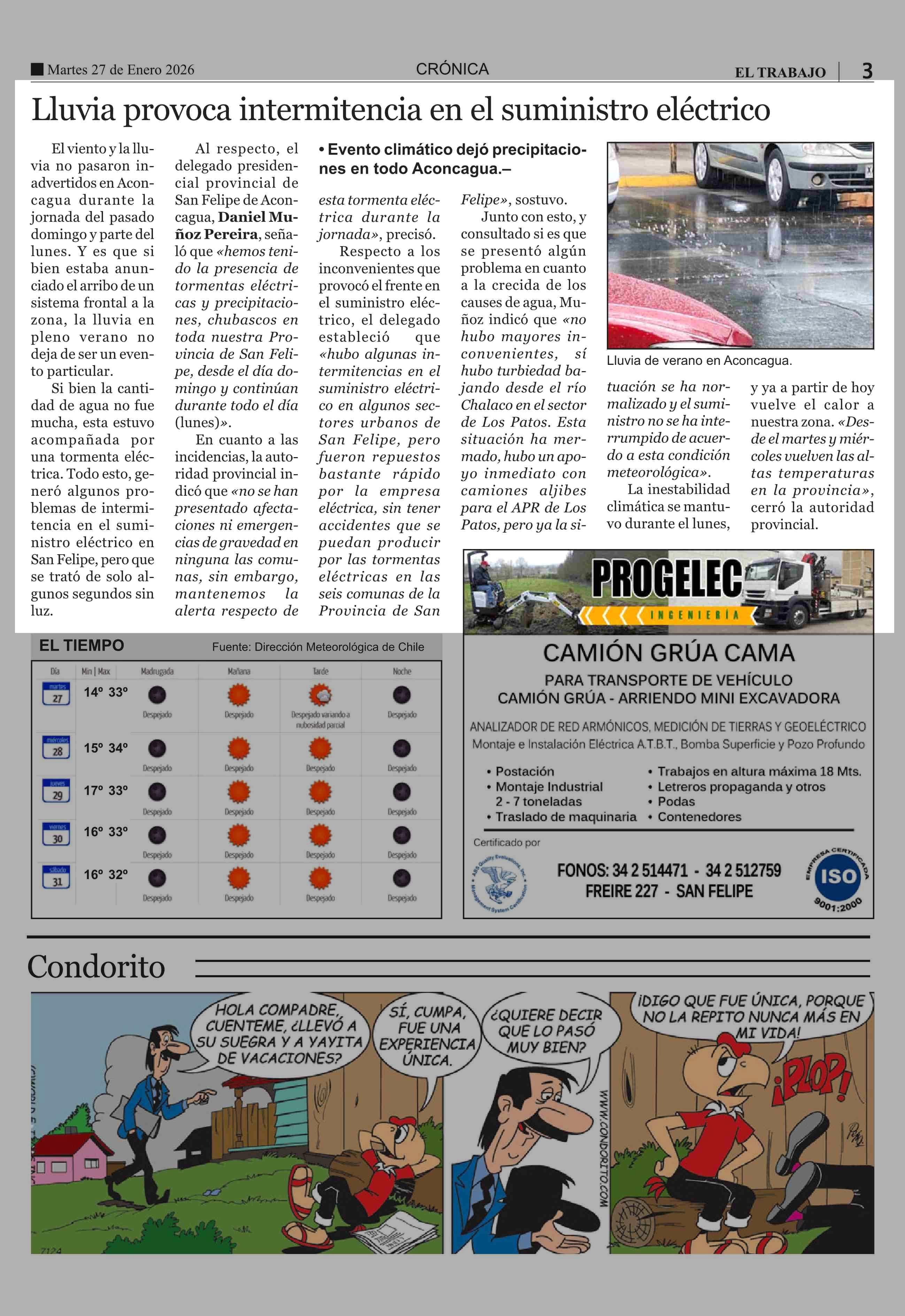 Lluvia provoca intermitencia en el suministro eléctrico 27-01-2026 El Trabajo |
