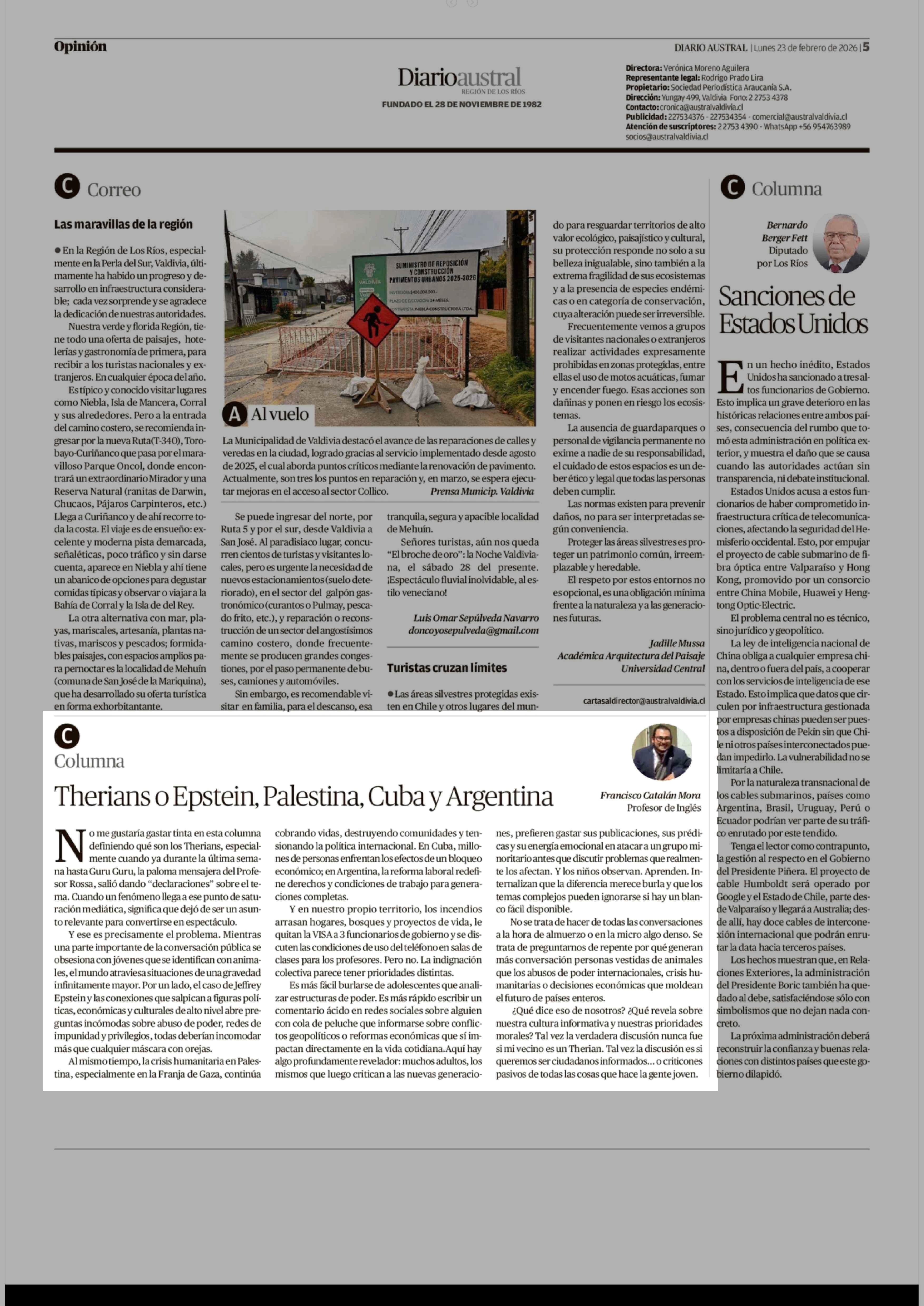 Fecha: 23-02-2026 Sector: Columnas de Opinión Región: Región de Los Ríos