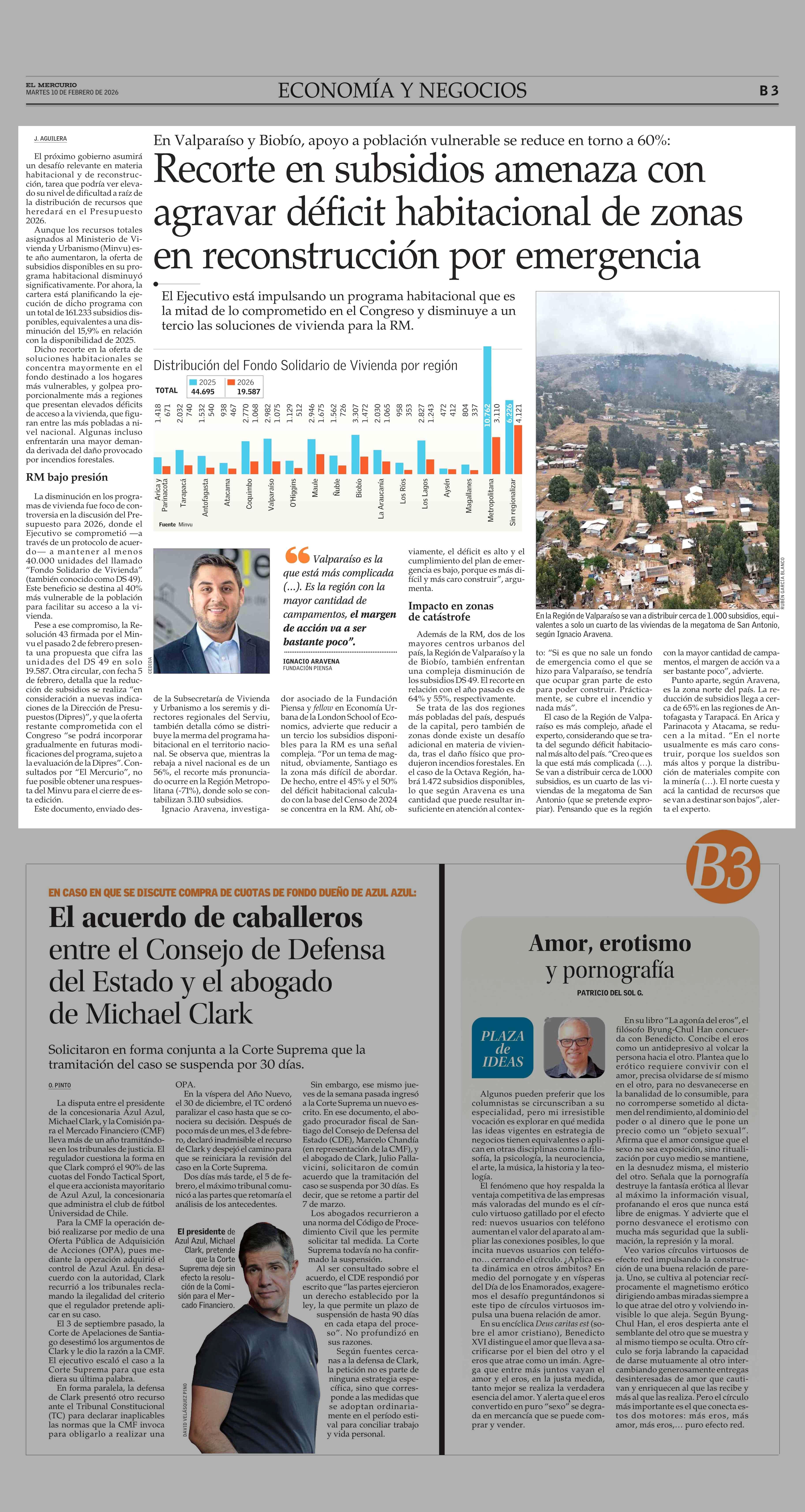 Recorte en subsidios amenaza con agravar déficit habitacional de zonas en reconstrucción por emergencia 10-02-2026 El Mercurio |