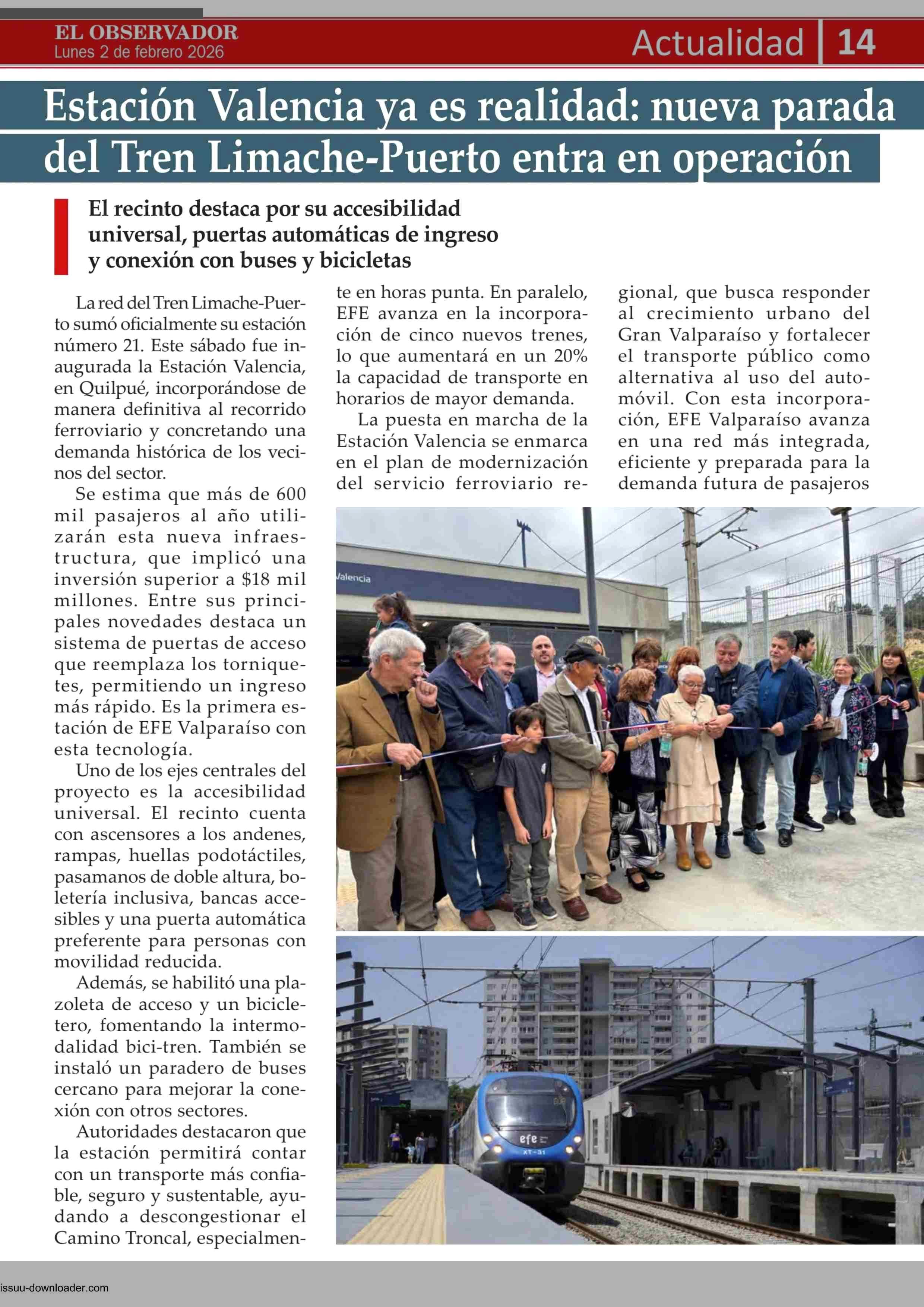 Título: Estación Valencia ya es realidad: nueva parada del Tren Limache-Puerto entra en operación